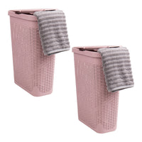 Mind Reader 40L Slim Laundry Hamper, Clothes Basket, Lid, Wicker Design, Plastic, 18''L X 10.4''W X 23.5''H, Set Of 2, Pink