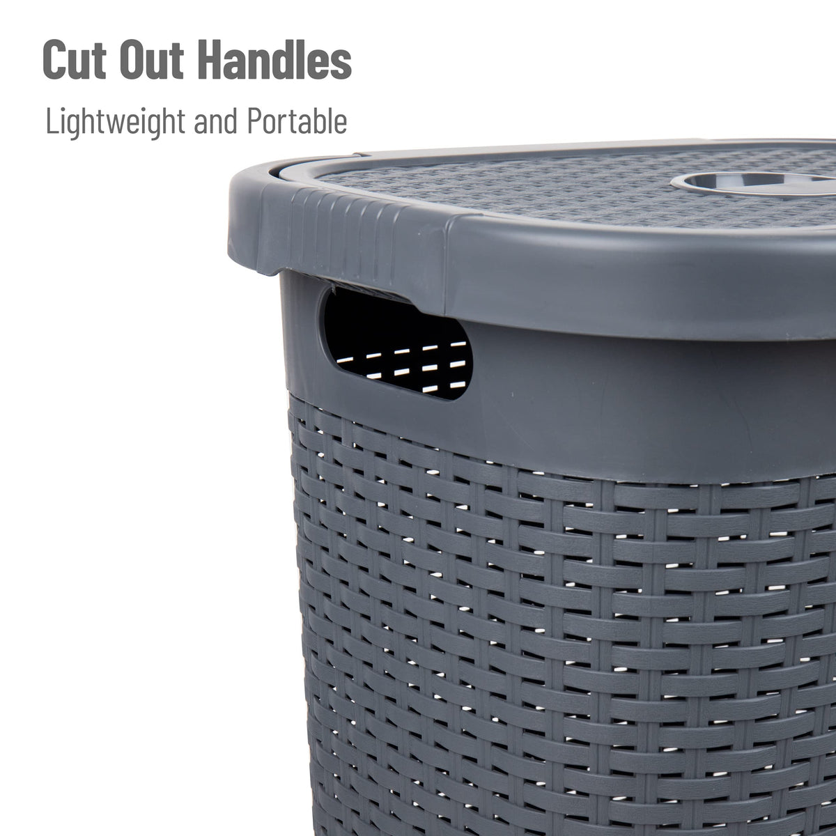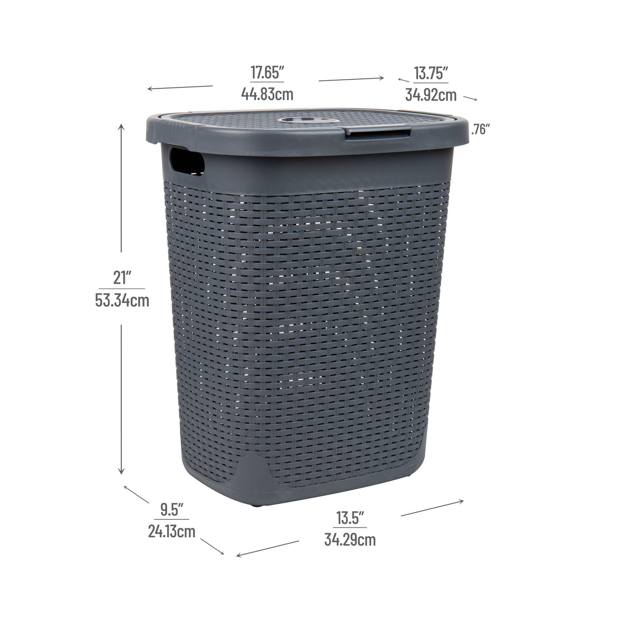 Mind Reader 50L Slim Laundry Hamper, Set Of 2, Clothes Basket, Lid, Wicker Design, Plastic, 17.65''L X 13.75''W X 21''H, Gray
