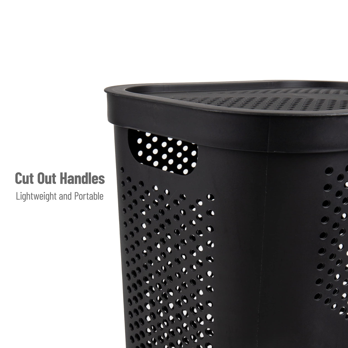Mind Reader 60L Slim Laundry Hamper, Clothes Basket, Lid, Ventilated, Plastic, 17.25''L X 13.75''W X 23.5''H, Black