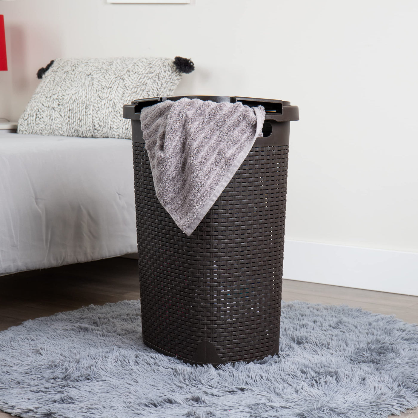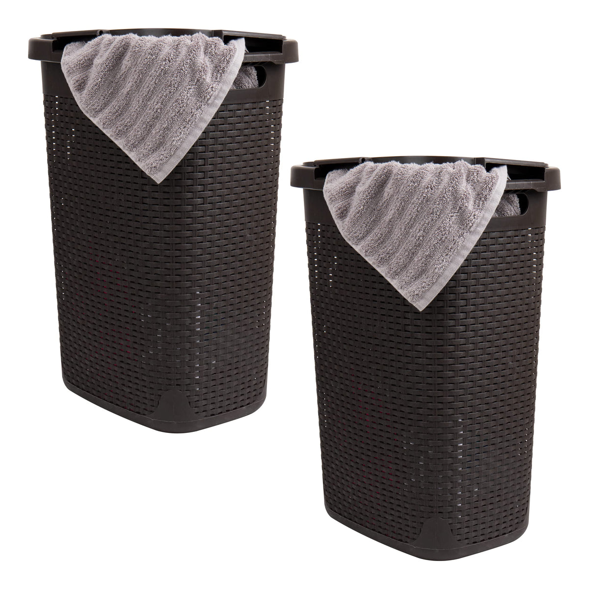 Versatile Heavy-Duty Hamper: Declutter With Style And Easeeffortlessly Manage Your Laundry Or Store Various Items With This Set Of Two, Durable And Stylish Hampers. Boasting A Robust Construction, This Hamper Can Securely Hold Up To 60 Liter (15Kg/33Lb) Of Clothes, Toys, Sports Gear, Crafting Supplies, Or Linens. Its Slender And Tapered Design Fits Comfortably Into Various Spaces, Making It Perfect For Use Next To Your Washing Machine, In Your Bathroom, Or Tucked Away In A Closet.Our Hamper'S Premium Wicker Design Not Only Adds A Touch Of Elegance But Also Provides Adequate Ventilation, Allowing Your Garments To Breathe. The Hinged Lid Is Easy To Snap Into Place Upon Arrival, Ensuring A Seamless Setup Experience. To Clean, Simply Wipe It Down With A Damp Cloth And Mild Soap.Whether You Need To Clear Up Clothes Clutter From Your Floor, Store Seasonal Clothing, Or Transport Laundry Up And Down The Stairs, This Hamper Is Up To The Task. Thanks To The Portable, Lightweight Design And Convenient Cut-Out Handles, Carrying A Full Basket Is A Breeze, Whether You'Re Headed To The Laundry Room, The Laundromat, Or Back Home From College.With Its Versatile Utility And Stylish Appeal, Our Heavy-Duty Hamper Is The Perfect Storage Solution For Any Room.