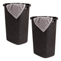 Mind Reader 60L Slim Laundry Hamper, Clothes Basket, Lid, Wicker Style, Plastic, 17.65''L X 13.75''W X 24.15''H, Set Of 2, Brown