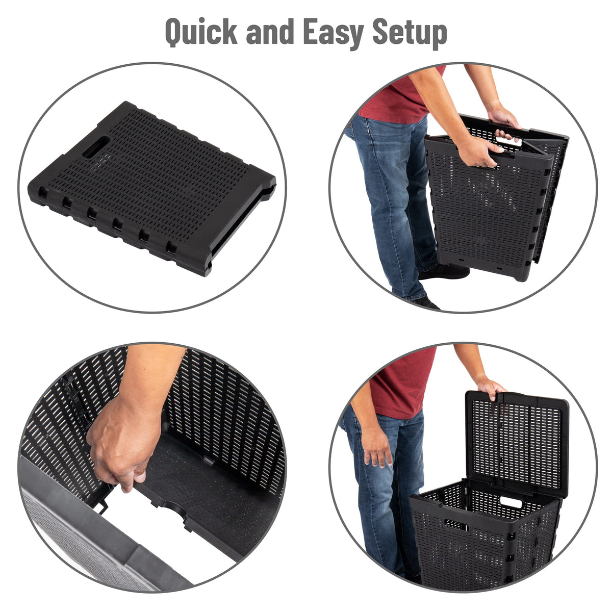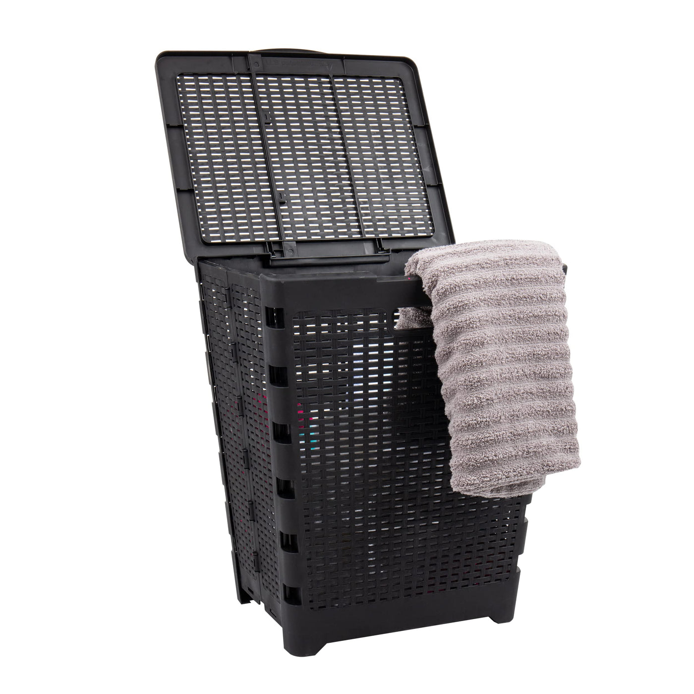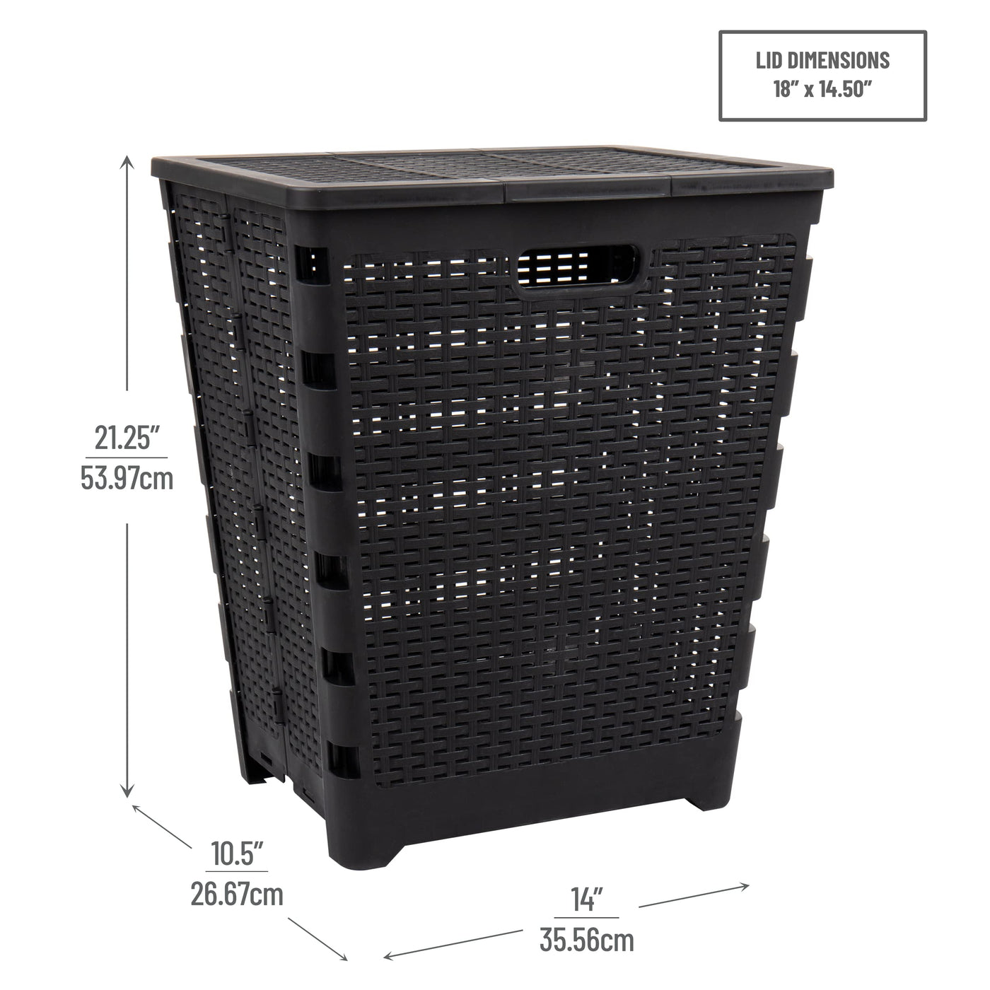 Mind Reader 61L Foldable Laundry Hamper, Clothes Basket, Lid, Wicker Design, Plastic, 18''L X 14.5''W X 21.25''H, Black