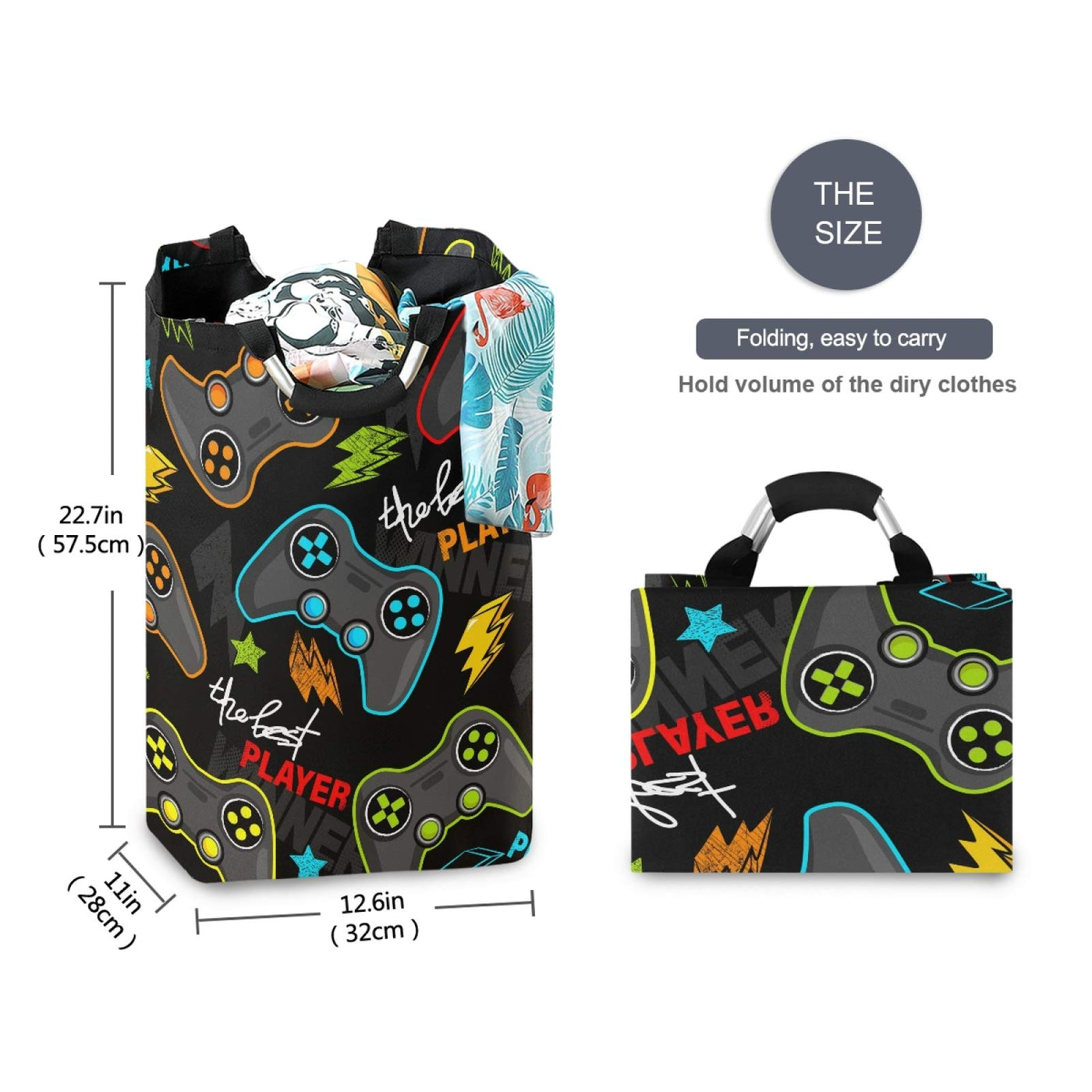 Qilmy Gamepad Laundry Hamper Large Waterproof With Handle Laundry Baskets Foldable Lightweight Durable Store Basket For Bathroom