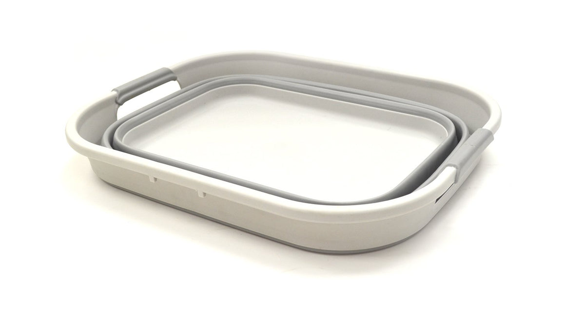 Q: What are the dimensions of the tub when expanded and collapsed?A: When expanded, the tub measures 18.1 x 14.2 x 8.25 inches. When collapsed, it measures 18.1 x 14.2 x 2.4 inches, making it easy to store without taking up much space.