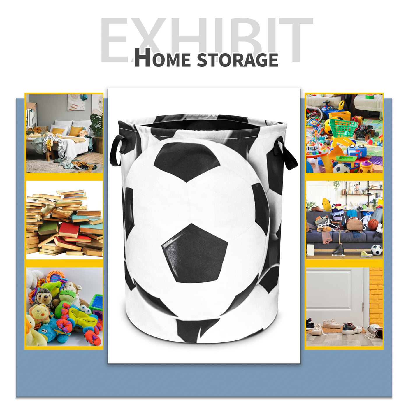 Q: Can the laundry basket be folded for storage?A: Absolutely! The Soccer Laundry Basket is foldable, allowing you to save space when not in use. When needed, it stands up flat without collapsing.
