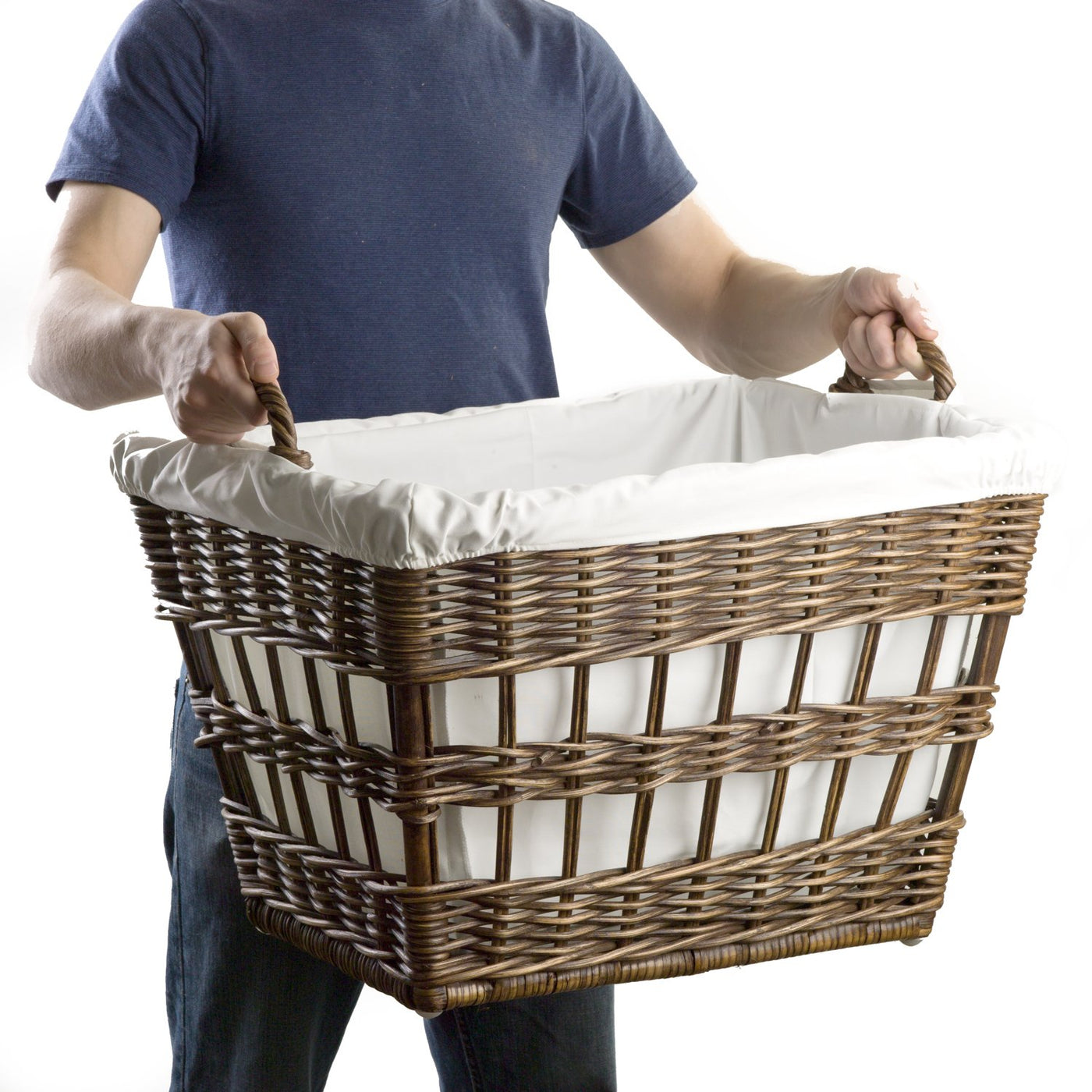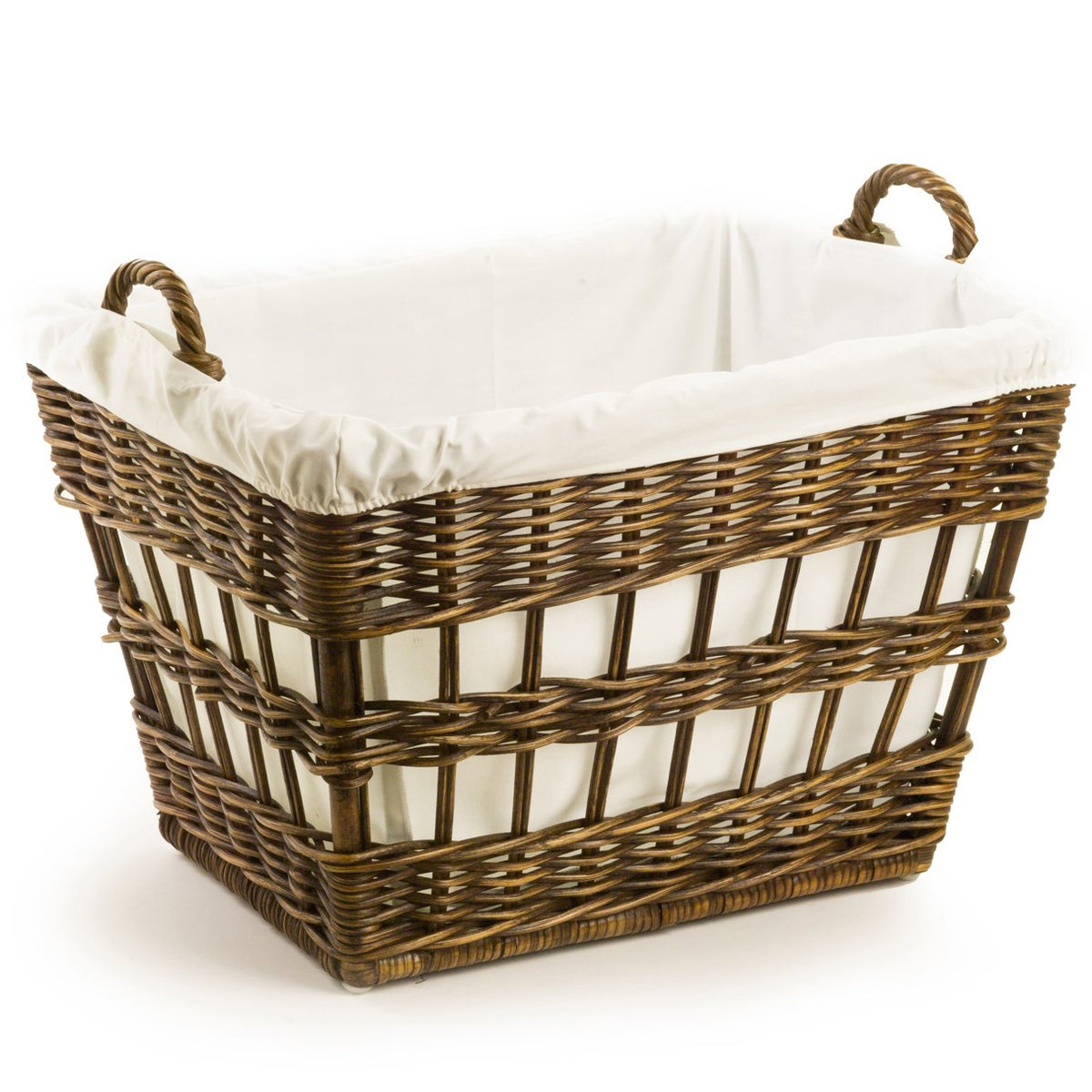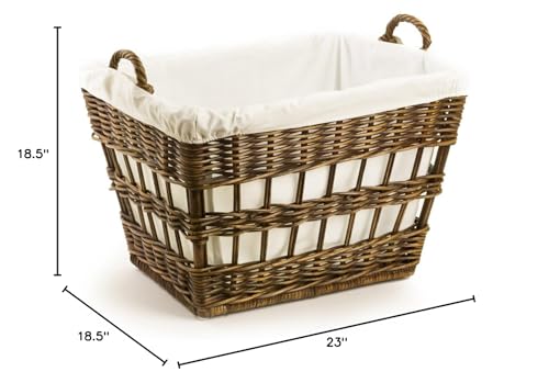 The Basket Lady Wicker French Laundry Basket, 23 In L X 18.5 In W X 18.5 In H, Antique Walnut Brown