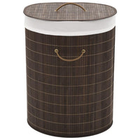 Vidaxl Dark Brown Oval Bamboo Laundry Bin/Hamper - Lightweight, Detachable Inner Bag, Convenient Handles, Multipurpose For Toy Storage