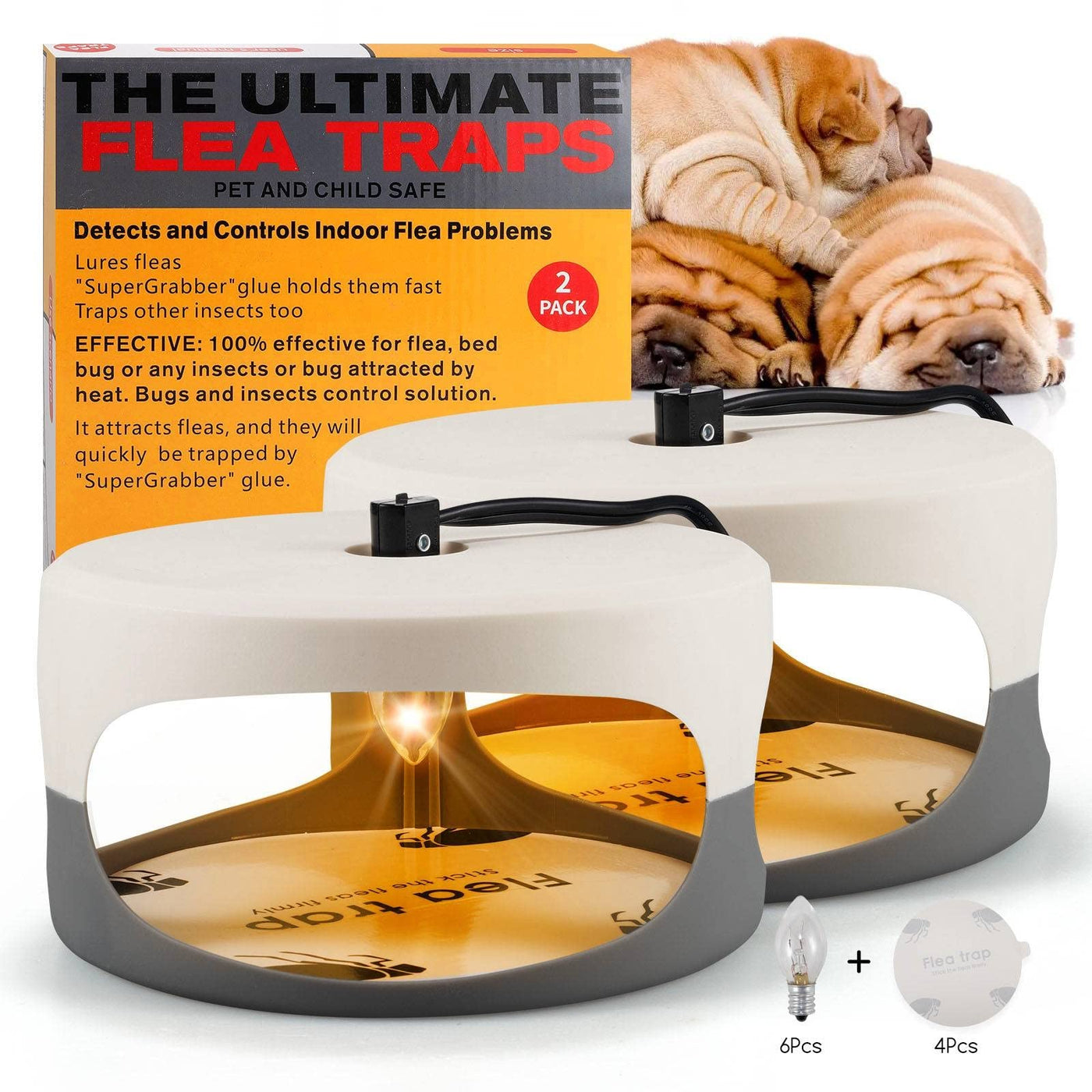 2 Pack Flea Traps For Inside Your Home With 4 Sticky Disc & 6 Bulbs & 2 Electric Wires, Flea Killer Indoor Bed Bug Trap Pest Con