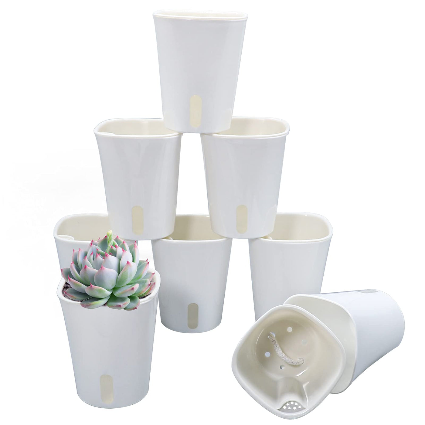 The Small Flower Pots Are Designed With Double Pots Design-Inner Pot For Planting Plants, Outer Pot For Storage Excessive Water, And Supply Plants Automatically When Needed. Our Succulent Pot Is Great For Decorating Windowsill, Desktop, Shelf, Bedroom, Living Room, Kitchen, Garden, Office, Etc. Small Plants Are Great Gifts For People You Loved, The Novel Patented Design Pot Is A Great Choice For Christmas, Mothers Day, Fathers Day, Housewarming, And Wedding Gifts. Package Include 8 Sets Small Plant Pots. Each Set Size Is 4 Wx4.5 H. Great Value. The Small Pots For Succulents Made Of Premium Abs Plastic, Any Weather Resistant. We Offer 1-Year Product Warranty.