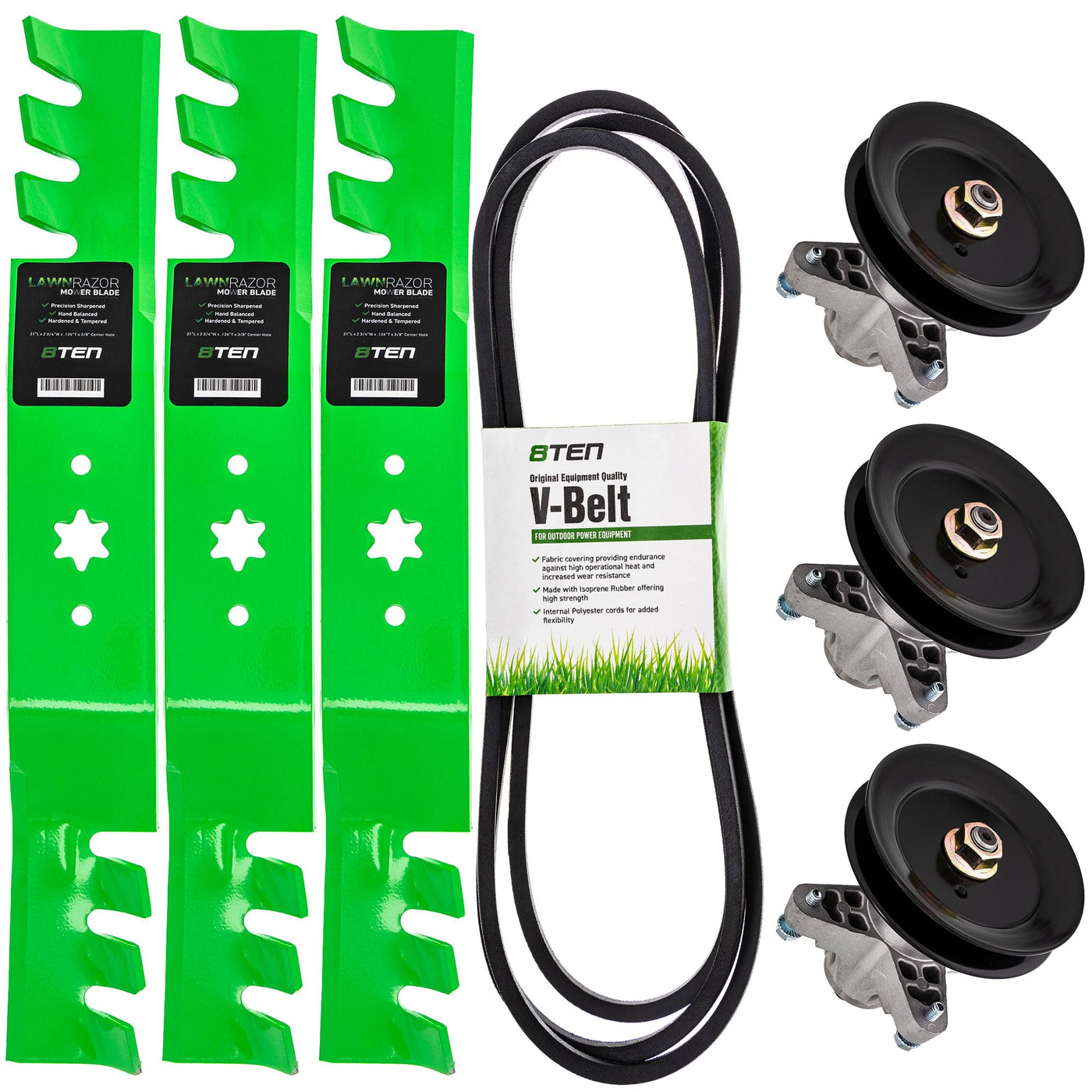 Included Items In This Bundle:(Qty 3) 8Ten 810-Csp2224N Deck Spindlesubstitute For Oem Part Numbers(S): 918-04126B, 918-04126A, 918-04126, 918-04125C, 918-04125B, 918-04125A, 918-04125, 918-014126, 618-04126B, 618-04126A, 618-04126, 618-04125C, 618-04125B, 618-04125A, 618-04125, 1120370(Qty 1) 8Ten 810-Cbl2343T Deck Beltsubstitute For Oem Part Numbers(S): 954-04044A, 954-04044, 754-04044A, 754-04044(Qty 3) 8Ten 810-Cbl2376D Lawnrazor Mulching Bladesubstitute For Oem Part Numbers(S): 942-04384, 942-04053-X, 942-04053H, 942-04053C-X, 942-04053C, 942-04053B, 942-04053A, 942-04053, 742-04384, 742-04053C, 742-04053B, 742-04053A, 742-04053, 490-110-M126, 490-110-M077, 490-110-C123Fits The Following Oem Models:Columbia - Rzt-42, Rzt-50, Zt-50Craftsman - Ztl7000Cub Cadet - Rzt-22, Rzt-50Mtd Gold - Rzt-42, Rzt-50Troy-Bilt - Mustang Rzt-50, Mustang Xp, Rzt-50White Outdoor - Zt-22, Zt-50, Zt-5000Yard-Man - Rzt-42, Rzt-50