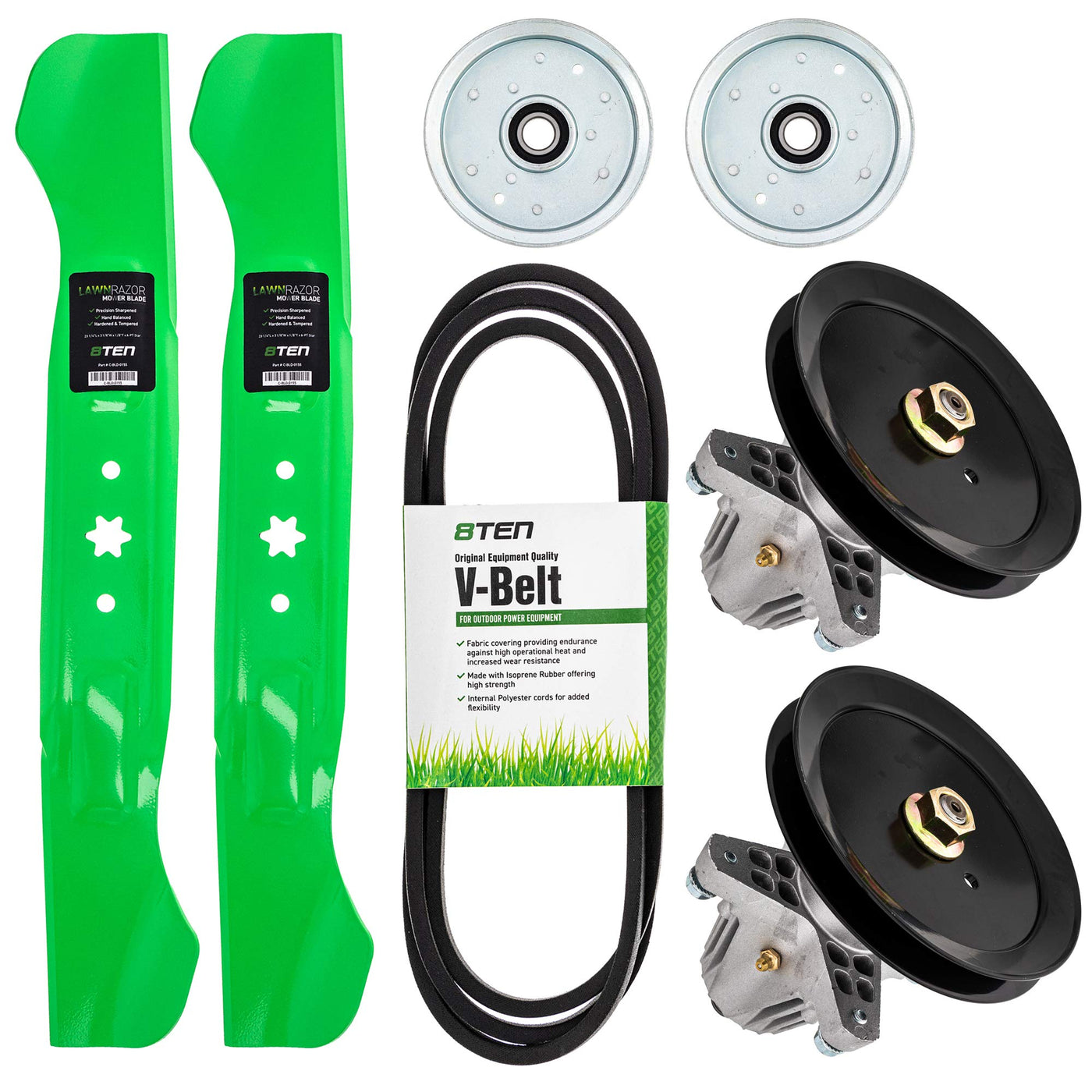 Included Items In This Bundle:(Qty 2) 8Ten 810-Csp2221N Deck Spindlesubstitute For Oem Part Numbers(S): 918-0865A, 918-04865A, 918-04636A, 918-04636, 618-04865A, 618-04636A, 618-04636(Qty 2) 8Ten 810-Cid2253L Idler Pulleysubstitute For Oem Part Numbers(S): 756-05042(Qty 1) 8Ten 810-Cbl2345T Deck Beltsubstitute For Oem Part Numbers(S): Occ-754-04219, 954-04219, 754-04219(Qty 2) 8Ten 810-Cbl2377D Lawnrazor High Lift Bladesubstitute For Oem Part Numbers(S): 942-04290A, 942-04290, 942-04244A, 942-04244, 754-04244, 742-04290A, 742-04290, 742-04244A, 742-04244, 490-110-C131Fits The Following Oem Models:Cub Cadet - Ltx-1045, Ltx-1046Mtd Gold - 935Ttroy-Bilt - Tb2246Yard-Man - Lt-46