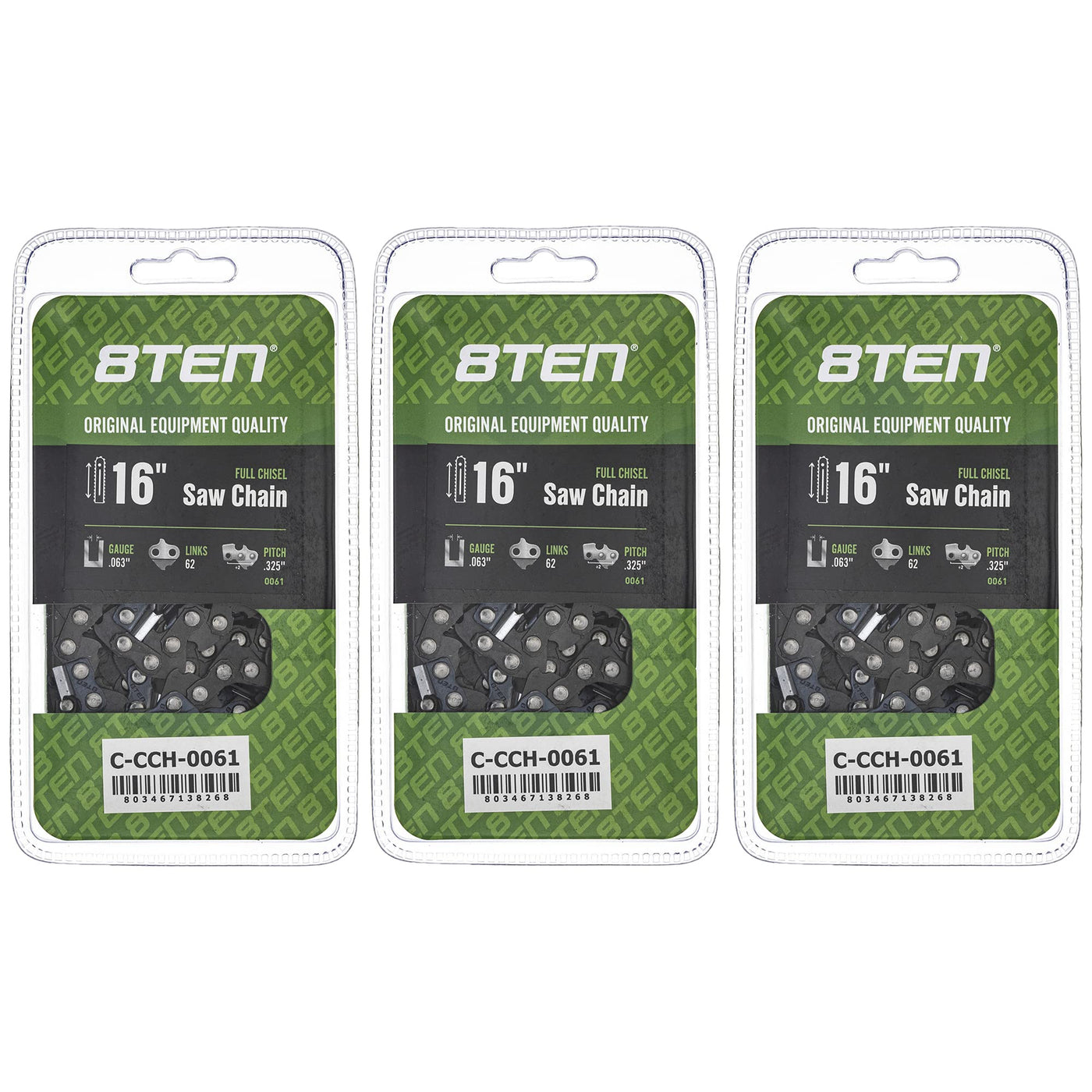 8Ten Full Chisel Chainsaw Chain 16 Inch .063 .325 62Dl For Stihl 025 Ms 230 241 250 251 (3 Pack)