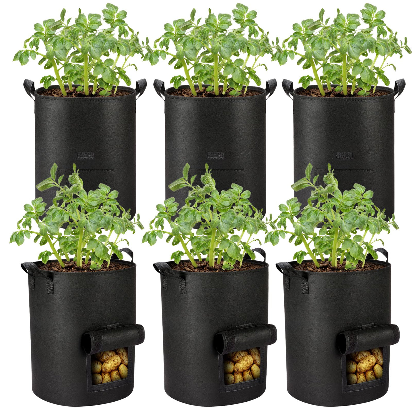 6-Pack 10 Gallon Potato Grow Bags, Heavy Duty Thickened Nonwoven Fabric Pots , Planting Container With Handles And Window For Tomato Vegetables Agoplee 6-Pack 10 Gallon Potato Grow Bags, Heavy Duty Thickened Nonwoven Fabric Pots , Planting Container With Handles And Window For Tomato Vegetableshigh Qualitymaterialour Grow Bagsare All Made Of High Quality&Nbsp; Thicken Nonwoven Fabric.These Bags Canbe Reused For More Than 3 Years.Do Nothesitateto Contact Us If There Is Any Issue With Our Grow Bags.Specification:Material:Nonwoven Fabricsize:18'X14'Color: Blackpackage Include:6X Potato Grow Bags