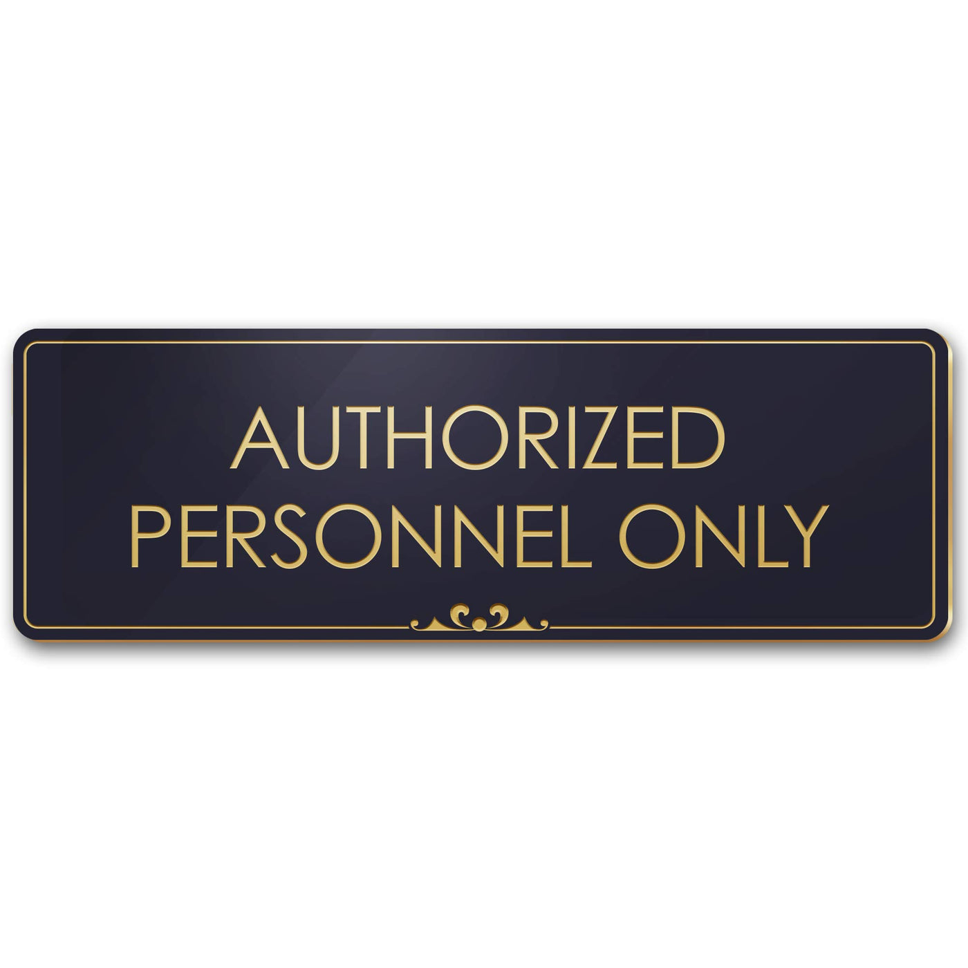 Authorized Personnel Only Sign, Black/Gold, Engraved, 3' X 9', Fade Resistance, Indoor/Outdoor Use, Usa Made By My Sign Center