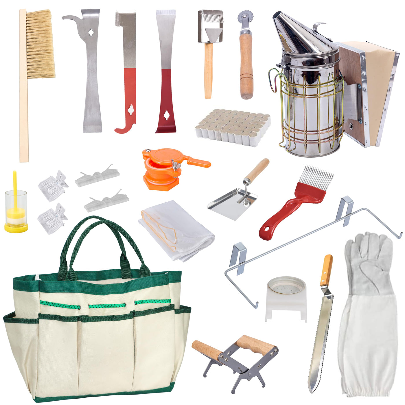 1.Product Name:Beecastle Beekeeping Supplies 22Pcs Beekeeping Tools Kit, Bee Keeping Supplies-All Tools Kit Bee Keeping Starter Kit For Beginners And Professional Beekeepers This Bee Keeping Supplies-All Tools Kit Includes 22Pcs Beehive Tools. Beekeeping Tools Are Made Of High Quality Stainless Steel, Plastic, Premium Wood And Nylon. All Beekeeping Tools Are Very Sturdy And Durable. Package List:1 Bee Smoker,1 Pack Bee Smoker Pellets,1 Frame Holder,1 Beehive Grip,1 Beekeeping Gloves,1 Bee Brush,1 J Hook,1 L Hook,1 Thumb Hook,1 Beehive Feeder,1 Cleaning Shovel,1 Spur Wire Wheel Embedder,1 Uncapping Fork,1 New Designed Uncapping Scraper,1 Uncapping Z Tool,1 Honey Gate,1 Honey Filter,2 Queen Cage,1 Queen Mark Tube,2 Hive Tools