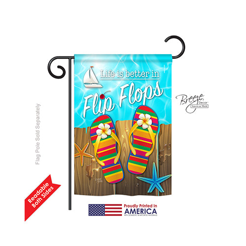 Featuressummer Better In Flip Flops 2-Sided Impression Garden Flagwith A 3&Quot; Pole Sleeveall Weather Resistant Pro Guard Polyester Soft To The Touch Materialdesigned To Hang Verticallydouble Sided - Reads Correctly On Both Sidesoriginal Artwork By Breeze Decoreco Friendly Proceduresproudly Produced In The United States Of Americapole Not Includedspecificationsmaterial: Polyestersize: 13 X 18.5 In. Dimension: 18.5&Quot; H X 13&Quot; W X 0.2&Quot; Lweight: 4 Oz