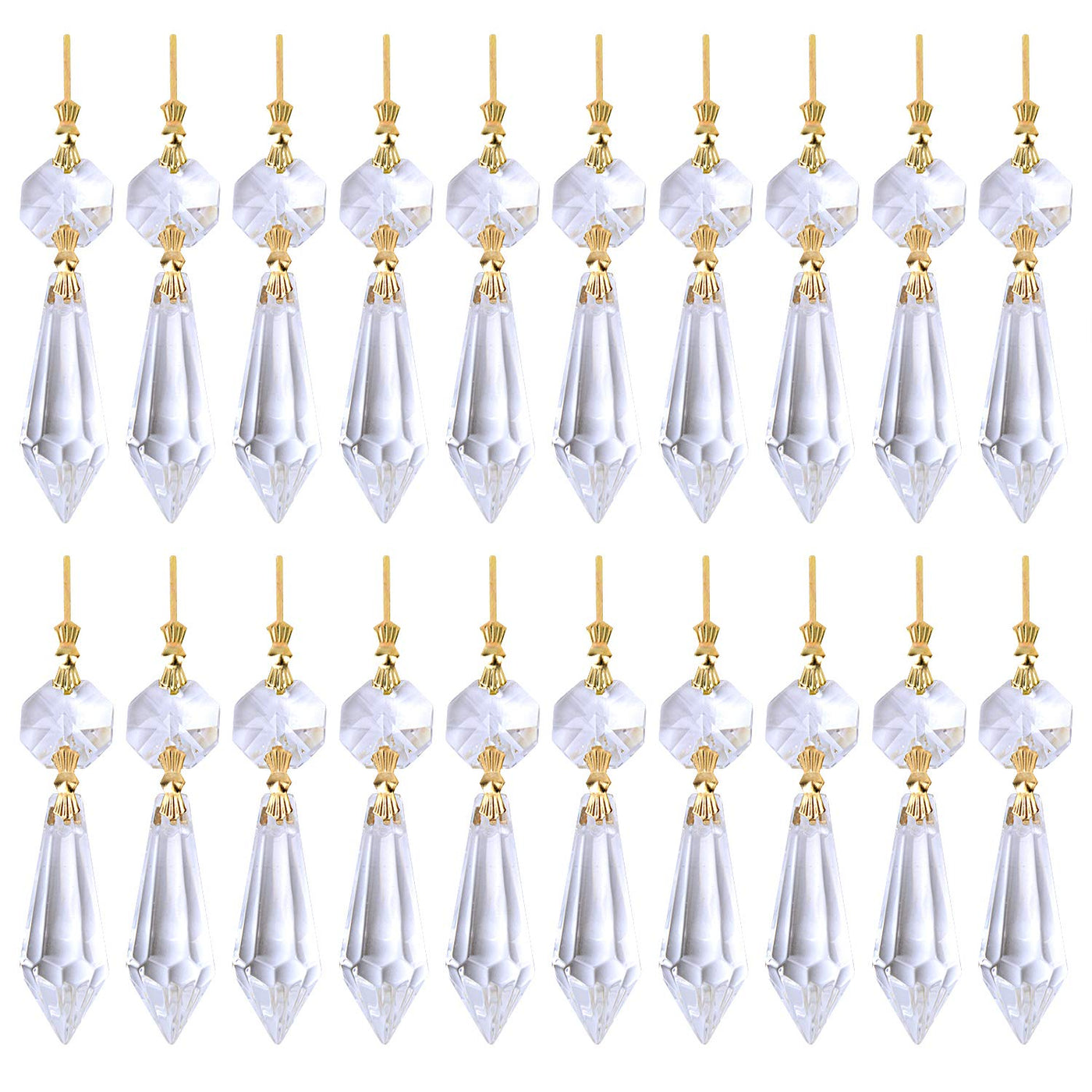 Bronagrand 20 Pieces Replacement Clear Chandelier Icicle Crystal Prisms Octogan Crystal Bead For Lamp Decoration,38Mm,Gold Bow T