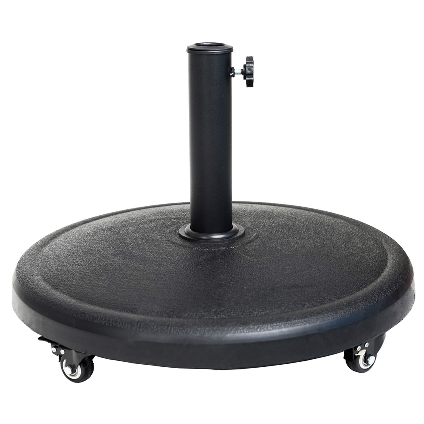 C-Hopetree 44 Lb Heavy Duty Round Base Stand With Rolling Wheels For Outdoor Patio Market Table Umbrella, Black