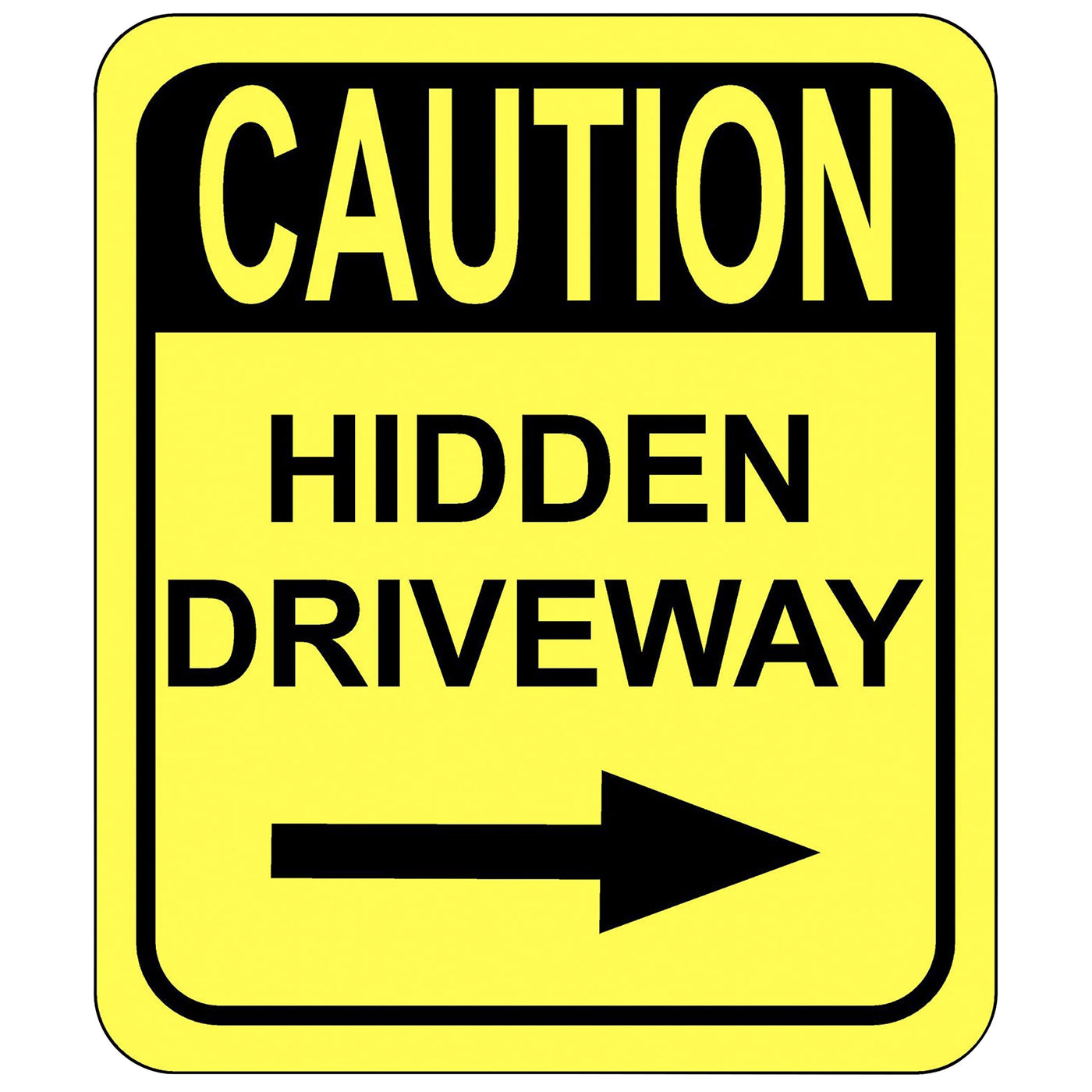 Caution Hidden Driveway Outdoor Sign For Home Or Office Keep Traffic Speed Low And Safety High Outdoor Sign 8.5' X 10' ? This Sign Clearly Instructs Drivers To Take Caution And Slow Down. ? Our Heavy-Duty Aluminum Composite Sign Can Withstand Rain, Snow, And Sleet. Bright Yellow Professional-Grade Graphics Ink Makes It Easy To Read This Sign. ? Read The Sign And Make Sure Deliveries Arrive, Speed Is Reduced, And Children Playing Are Safe.