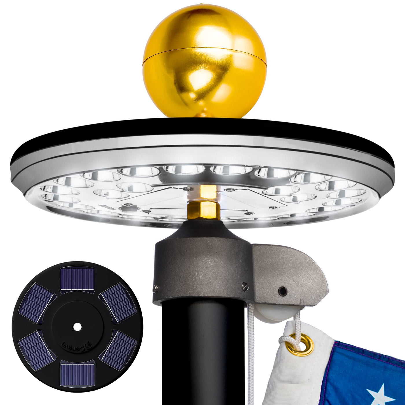 Showcase Your American Pride And Pay Respect To The Land Of The Free With The Flag Pole Light Solar Powered Our Decorative Solar Flag Pole Light Is Durably Crafted For All Seasons Reliably Illuminate Outdoor Flags Throughout The Night, In Accordance With The Us Flag Code Section A 6 (A): Atime And Occasions For Display: Ait Is The Universal Custom To Display The Flag Only From Sunrise To Sunset On Buildings And On Stationary Flag Staffs In The Open However, When A Patriotic Effect Is Desired, The Flag May Be Displayed Twenty-Four Hours A Day If Properly Illuminated During The Hours Of Darknessaa Our Once-And-Done Solar Flag Light Is Easily Installed On A 15 To 25 Ft Flagpole In Your Yard, Where It Will Remain Undisturbed For Its Lifetime Of Use The Solar Cells Convert The Dayas Sunlight Into Usable Electricity, Which Powers The Flag Pole Solar Light From Sunset To Sunrise Salute Veterans And Active-Duty Service Members Represent Your Military Or Law Enforcement Family An American Flag Pole Solar Light For Outdoors Is The Perfect Gift For Vets, Us Citizens, Expats, And All The Patriotic Men And Women Who Proudly Serve America The Beautiful Get Wider Coverage Worthy Of The Stars & Stripes The Flagpole Light Diameter Is 95A Instead Of The Standard 65A Which Illuminates More Of Your Flag With Its 60% More Light Coverage The Quick Tool-Free Installation Comes With An Easy-To-Follow Guide Ideal For 3Ax5A And 4Ax6A Flags Fits Most 15 To 25 Ft In-Ground Flag Poles With 12-Inch Spindles It Sets Up In Minutes And Stays Up For Years Deneve Offers Unparalleled Brightness And Luminosity A Solar Light For Flag Pole With A High Concentration Of Photovoltaic Cells Is Able To Reliably Convert Greater Amounts Of Sunlight Into Usable Electricity Deneve Deluxe Blackas 1300 Lumens Of Blindingly Bright Light Offer 5X The Luminosity Compared To Similar Outdoor American Flagpole Light Models