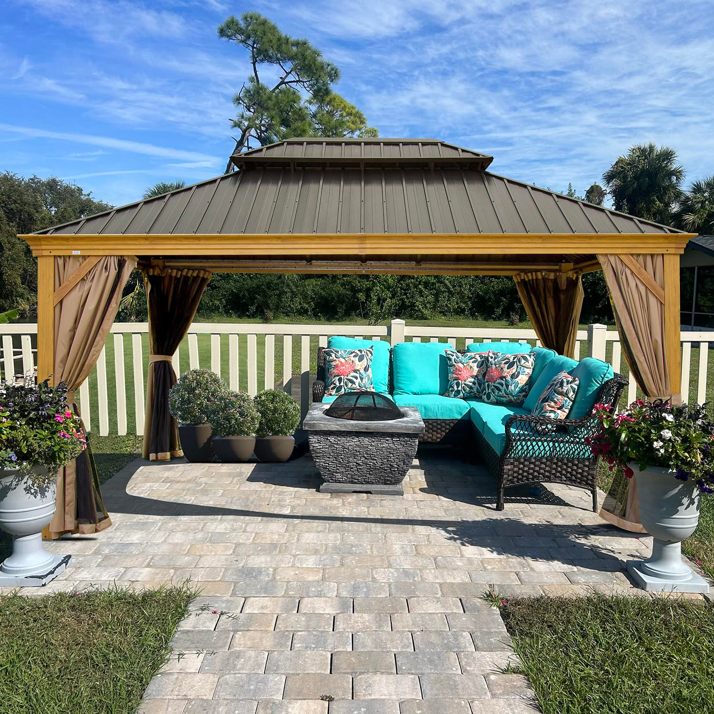 Domi Outdoor Living 12X16 Hardtop Gazebo, Wooden Coated Aluminum Frame Canopy With Galvanized Steel Double Roof, Outdoor Permane