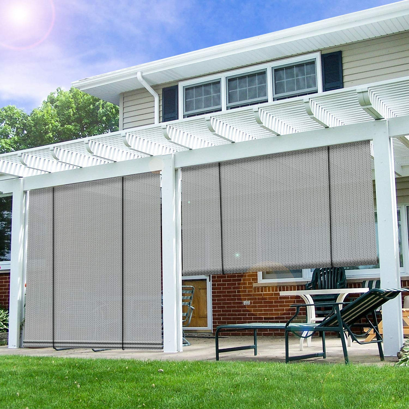 E&K Outdoor Roll Up Shade For Porch, Pergola, Deck, Balcony, Patio Or Any Spaces You Need Shade And Privacy.Features:- Breathable And Light Filtering Fabric- Blocks Up To 90% Sun Rays- Cool Down Your Shade Space- Tie Downs Included For Child Safepackage Contents:- Anchor Clip X2- Screws X 6- Pull Rope X 1- Fabric X1- Section Pole And Pole Connector- Eye Bolt X 2- Zip Ties X 10- Tie Downs X2&Nbsp;-Rope Holder X1- Installation Instruction X1- Mounting Brackets X2- Wire Cable X1- Hex Key X1