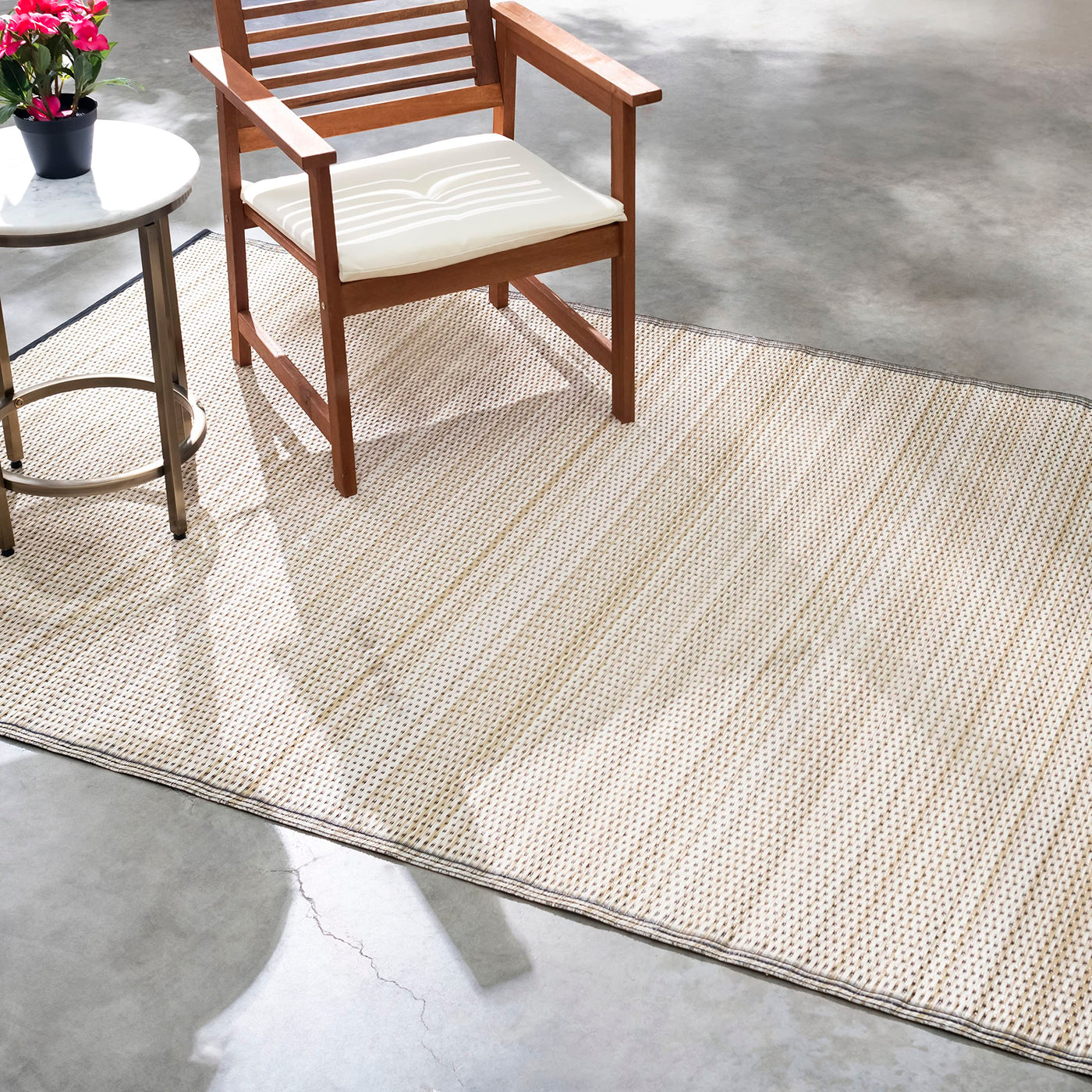 Fab Habitat Outdoor Rug - Waterproof, Fade Resistant, Crease-Free - Premium Recycled Plastic - Neutral Striped - Large Patio, De