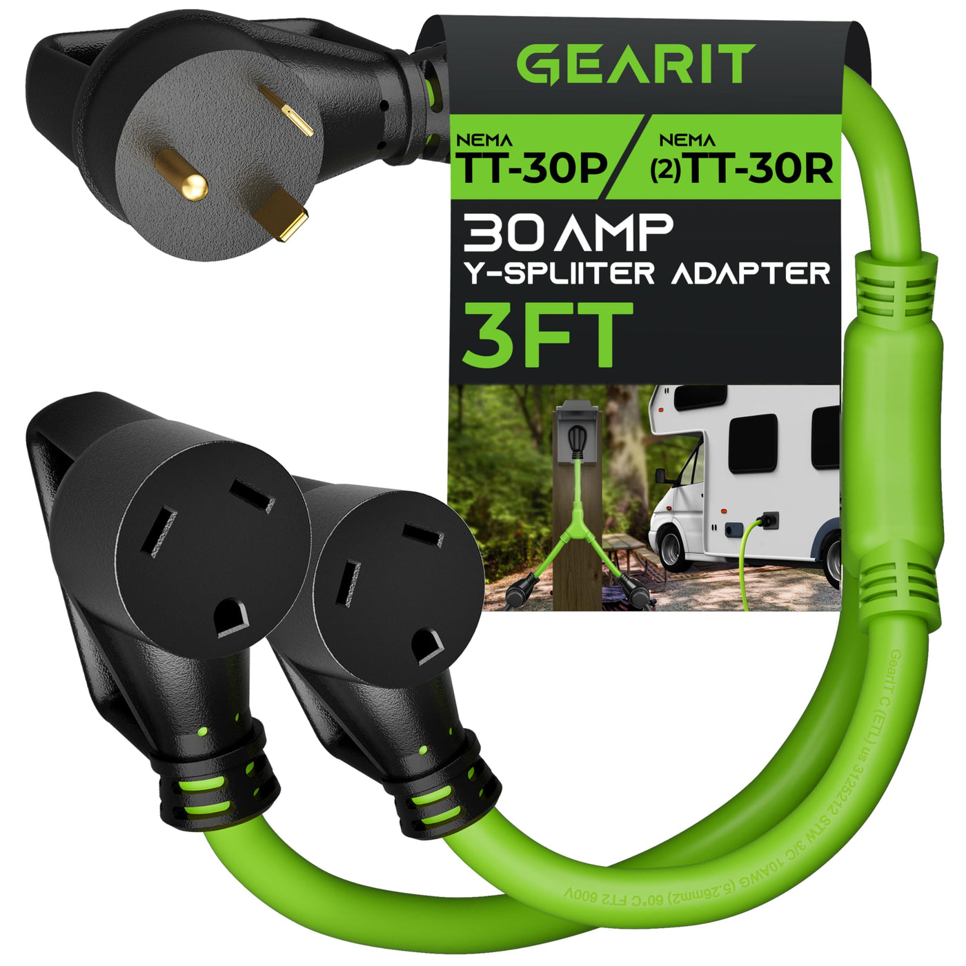 Gearit Rv Y Adapter Cord 30 Amp To (2) 30 Amp, Nema Tt-30P To (2) Nema Tt-30R, Male Plug To Female Receptacles, 3-Prong Heavy Du