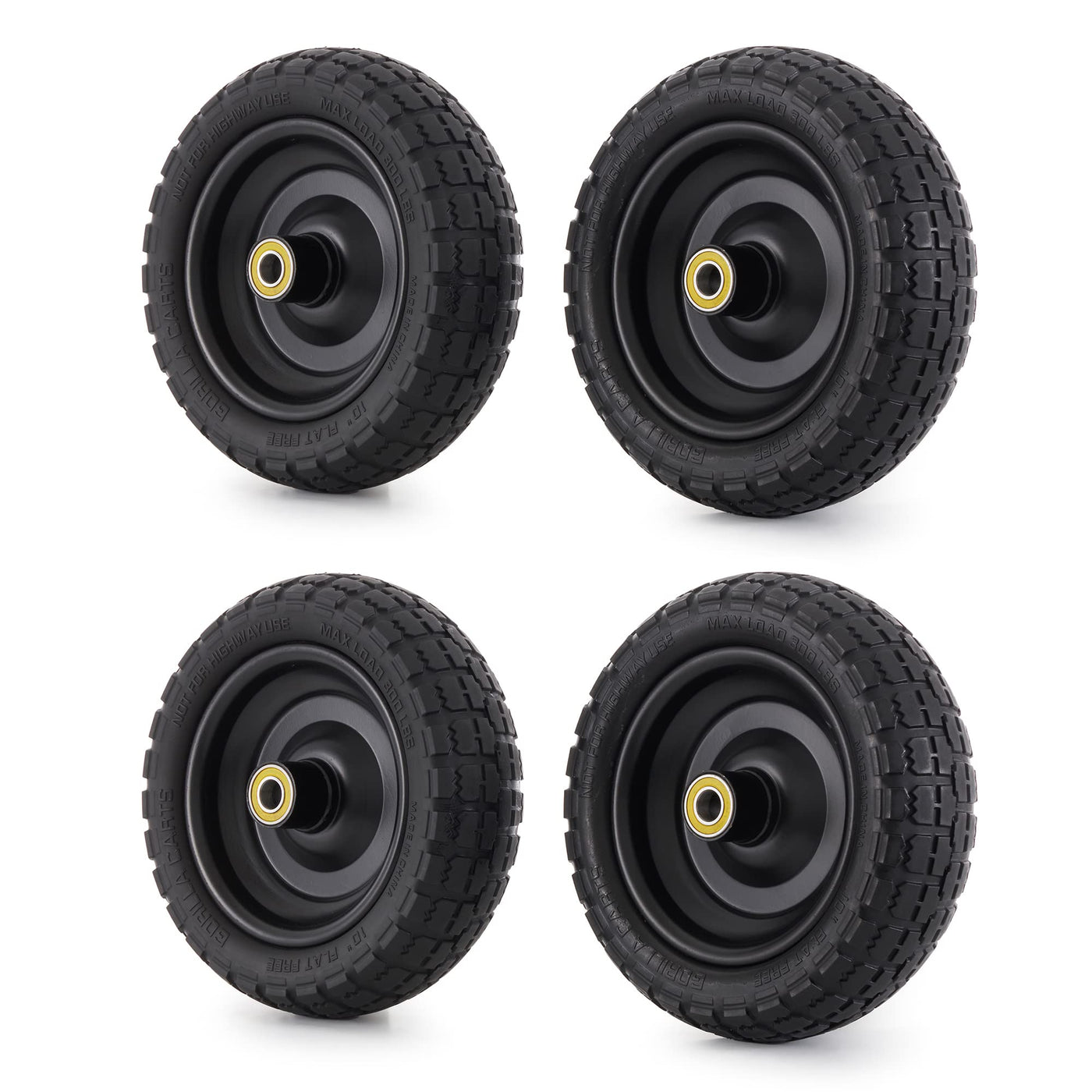 When You 'Ve Got A Flat Tire, Turn To This 4-Pack Of Gorilla Carts Gct-10Nf 10-Inch No-Flat Replacement Tires. With Versatility, A Durable Construction, And 300-Pound Weight Capacity Per Tire, You Will Be Able To Take On Any Job, Anywhere. Switch Out Your Cart 'S Wheels On Hand Trucks, Air Compressors, Garden Carts, Lawn Carts, Wagons, And More. Made Of Solid Polyurethane, These Long-Lasting Tires Have An Offset Wheel Hub And Boast A Combined Weight Capacity Of 600 Pounds, Giving You The Flexibility To Haul A Wide Variety Of Materials. These Wheelbarrow Tires Are A Perfect Replacement For Pneumatic Tires And Are Compatible With Many Gorilla Cart Models. These Wheels Are Gorilla Tough, Which Is More Than Just Strength. We Aim To Design And Engineer Products That Exceed The Highest Expectations. You Can Count On This Gorilla Carts Gct-13Nf 13-Inch No-Flat Replacement Tire 2-Pack To Offer Durability, Versatility, And The Flexibility You Need For Any Project. These Replacement Tires Are A Compatible Fit With Various Brands, Alongside Fitting Most Gorilla Lawn And Garden Cart Models.. For Gorilla Cart Models, Choose The Gor0865(-C), Gor0865-D(-C), Gor865D11-1(-C), Gor866D(-C), Gor108-Bg, Gor108-D, Gor1000Ps(-C), Gor1001-Com, Gor1200-Com, Gor1200Ps-C, Gor1200X, Gor1201B, Gor62-Com, Gor6Ps(-C), Gormp-9, Gormp-10(-C), Gormp-12, Or Gormp-14.