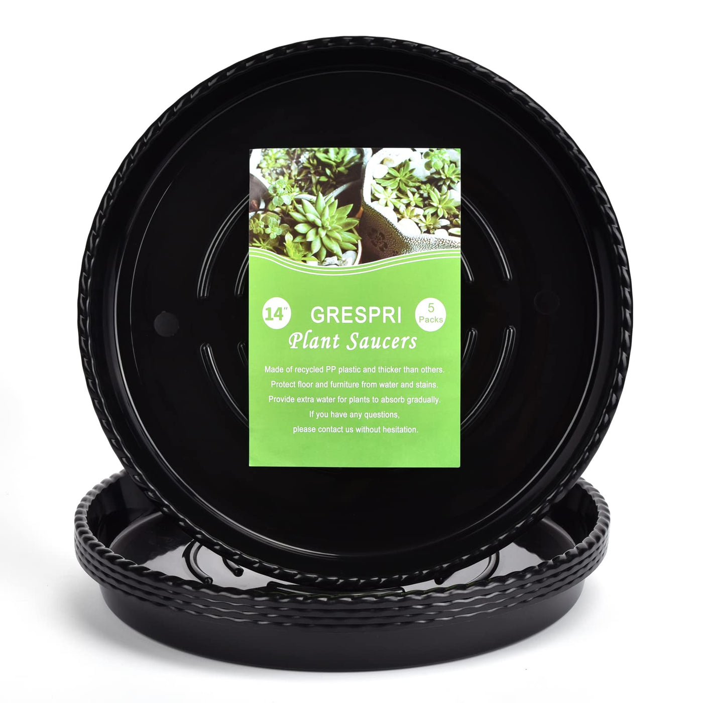 Grespri Heavy-Duty Black Plant Saucer 14 Inches, 5 Packs Durable Plastic Plant Trays, Sturdy Thickned Planter Drip Trays For Ind