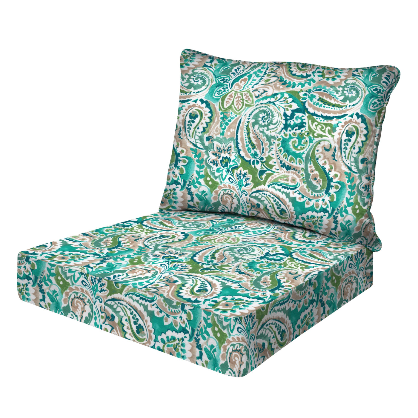 Honeycomb Essentials Outdoor Deep Seating Cushion, 24 X 24 , Geneva Paisley Turquoise Patio Chair Cushion