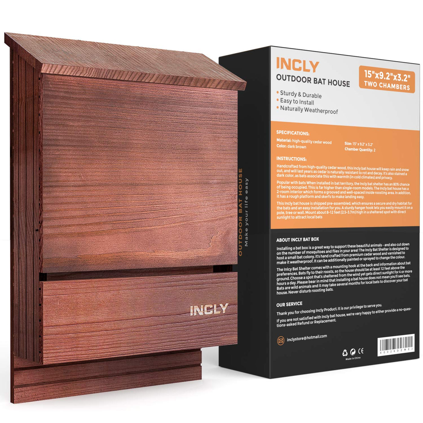 Incly Bat House For Outdoors 15'X9.2'X3.2' Shelter Box Kit Double Chamber Dark Natural Cedar Wood, Pre-Finished Easy To Insta
