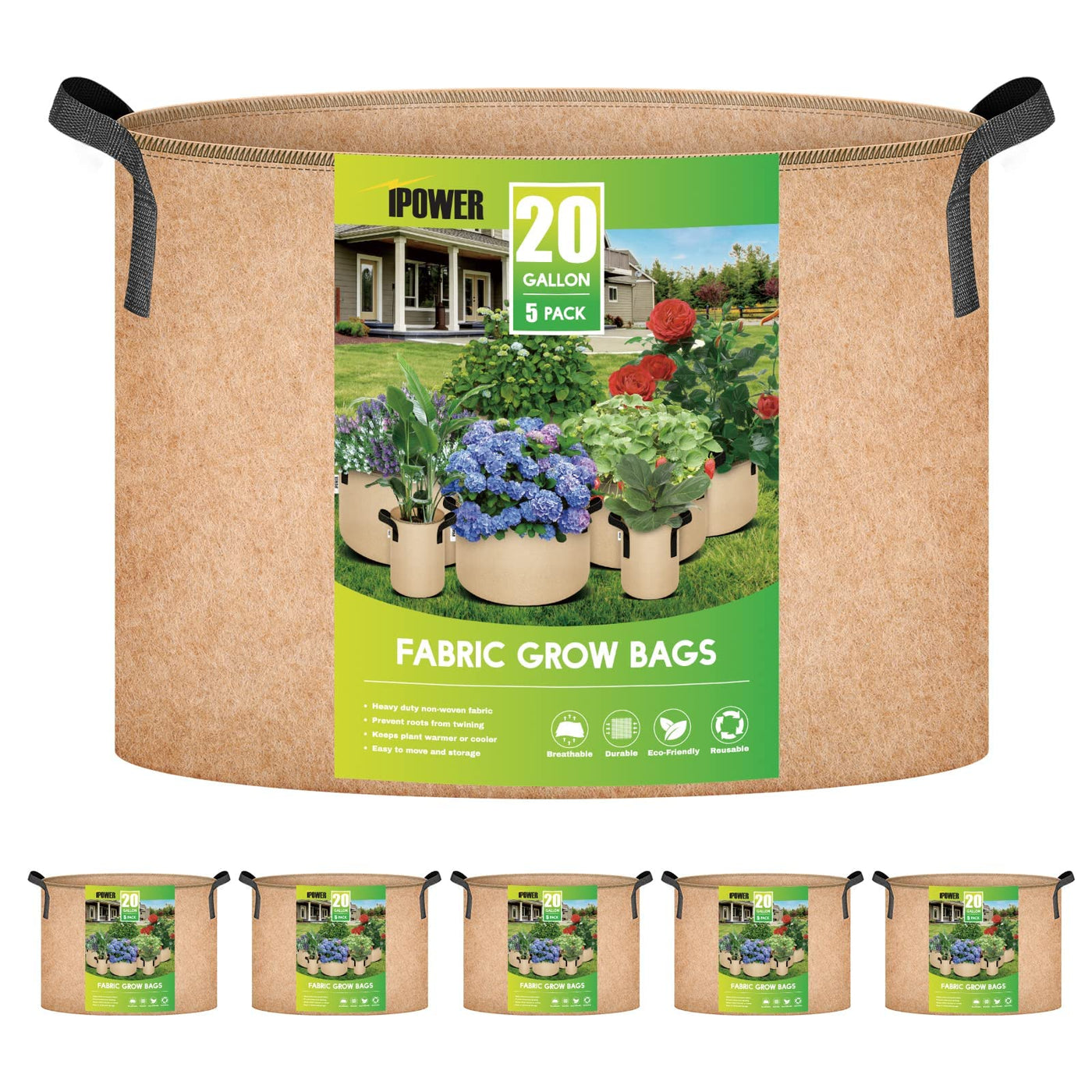 You Can Grow Without A Space Requirement With Ipower Smart Potsyou Can Protect Your Plant By Simply Using Ipower Air Root Pruning Grow Containerskeep Plants Cooler In Summer And Warmer In Winterkeeps Roots Form Over-Wateringkeep Transplant Process Easy And Safespecifications:- Pot Dimension : Diameter 21 0 Inches, Height 15 0 Inches- Size: 20 Gallon- Material: 300G Non-Woven Fabrics- Strap Handles: Twopackage Contents:- 5 Pack Grow Bags