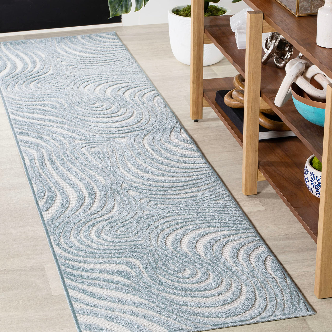 Jonathan Y Scn103C-210 Maribo High-Low Abstract Groovy Striped Light Blue/Ivory 2 Ft. X 10 Ft. Indoor/Outdoor Runner Rug, Pet Fr