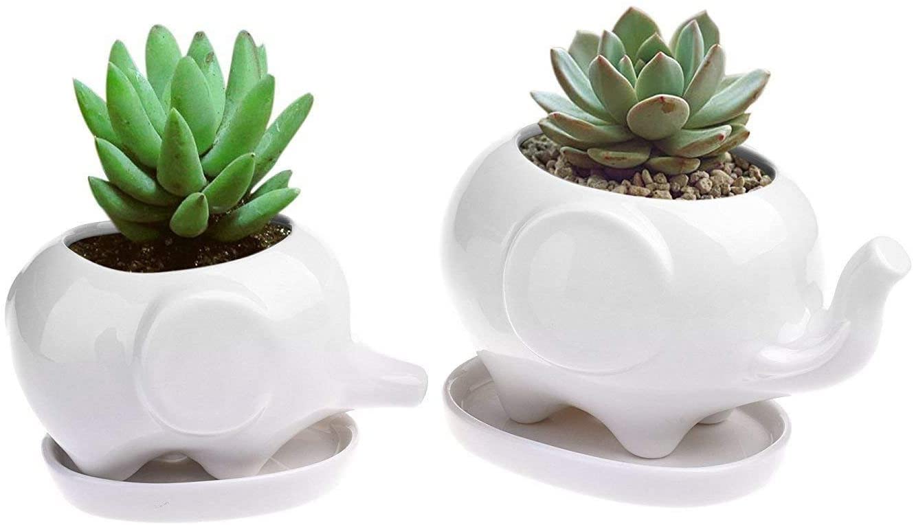 Maerskye One Set Cute Elephant Flower Pot With Tray,Modern White Ceramic Succulent Planter Pots / Tiny Flower Plant Containers