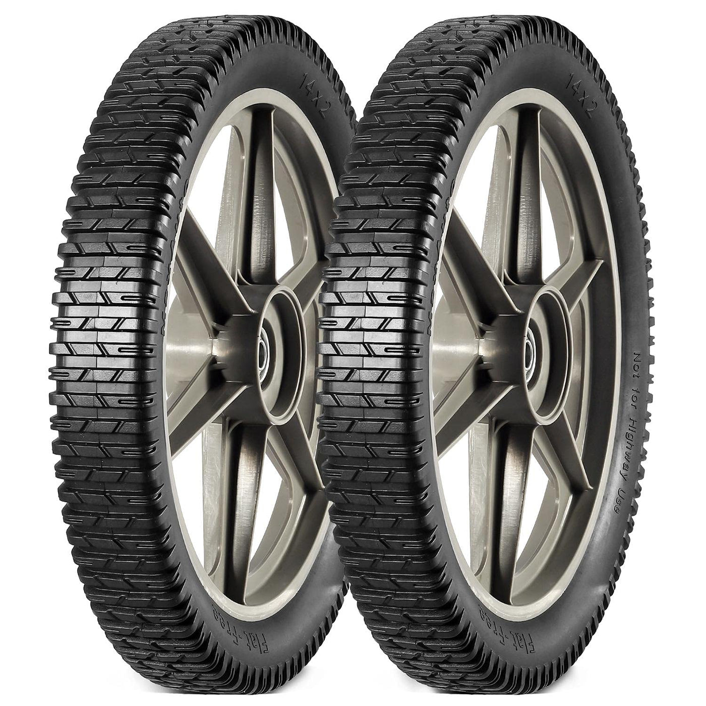 Maxauto 14 X 1.75' Spoked Plastic Wheel With Tire, Black,2 Pack, 1.75' Offset Hub Length,1/2' Inside Bearing 14X1.75 Plastic Tire Compatible With Craftsman Lawn Mower