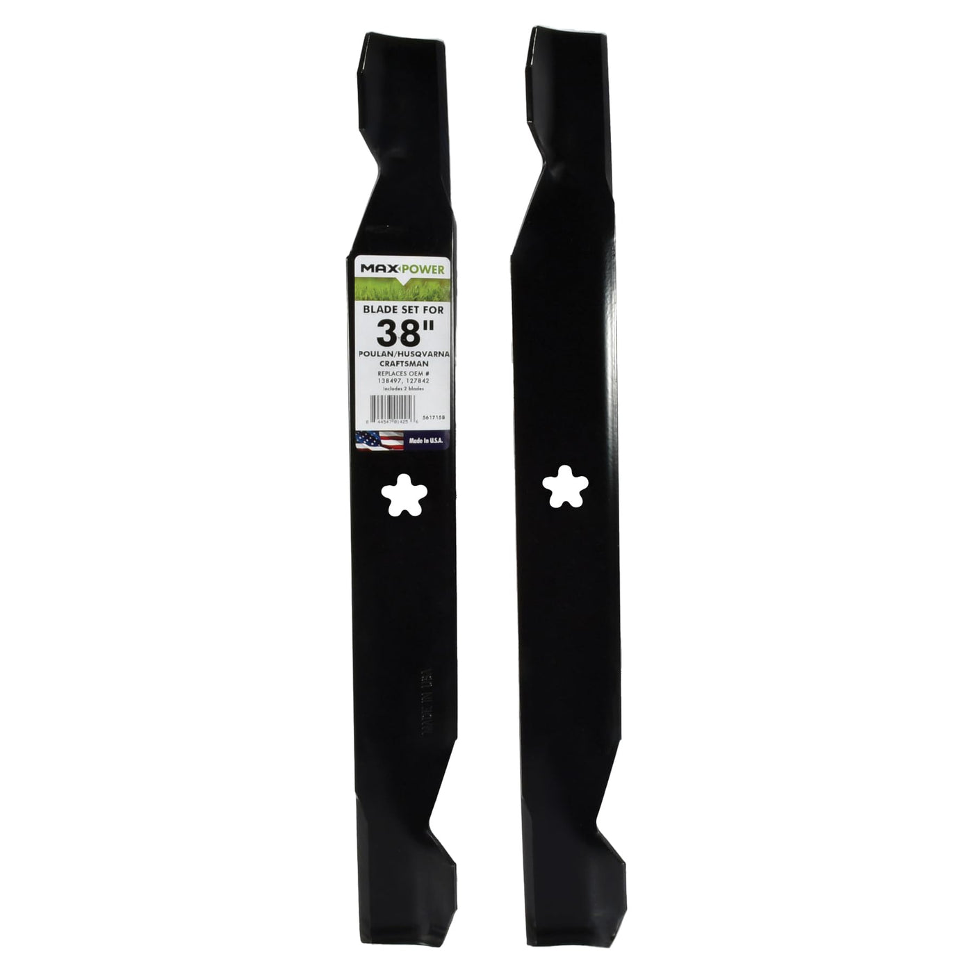 Maxpower'S 561715B 2-Blade Set For 38-In Cut Craftsman, Husqvarna, Poulan Replaces 127842, 138497, 532138497 And 532127842. Includes 2-Blades For A 38-In Cut. This Blade Measures 19-5/16-In L X 2-1/4-In W And Has A 5 Point Star Center Hole Diameter. To Ensure Proper Fit, Please Verify The Oem Number Of The Blade You Are Replacing Matches The Oem Number Listed In This Description. Maxpower Blades Are Proudly Manufactured In The Usa To Meet Or Exceed Oem Specifications.