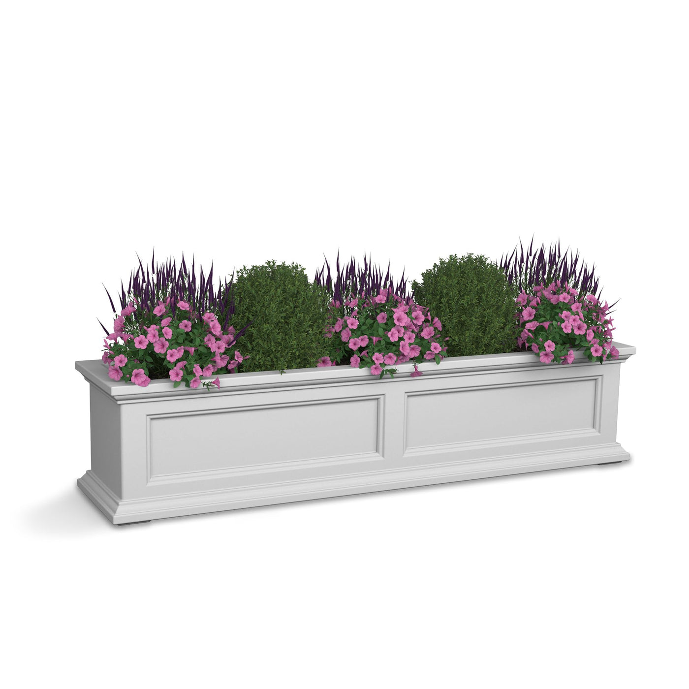 Mayne Fairfield 4Ft Window Box - White - Durable Self Watering Resin Planter With Wall Mount Brackets (5823-W)