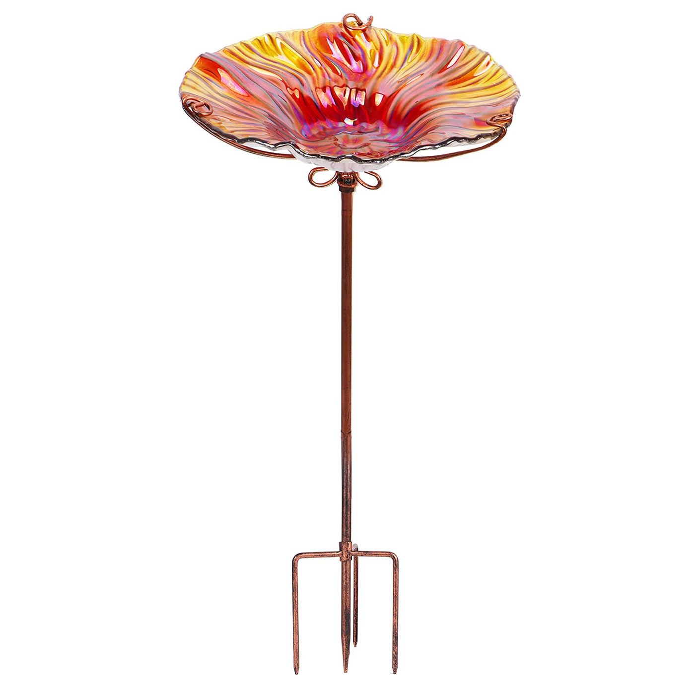 Mumtop 26 Inch Height Glass Birdbath Birdfeeder With Metal Stake Garden Outdoor Red