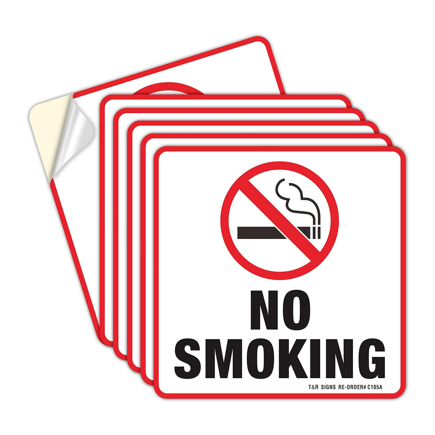 No Smoking Sign Stickers - 6 Pack 6 X 6 Inches - 4 Mil Vinyl - Laminated For Ultimate Uv, Weather, Scratch, Water And Fade Resistance - Self Adhesive- Indoors And Outdoors