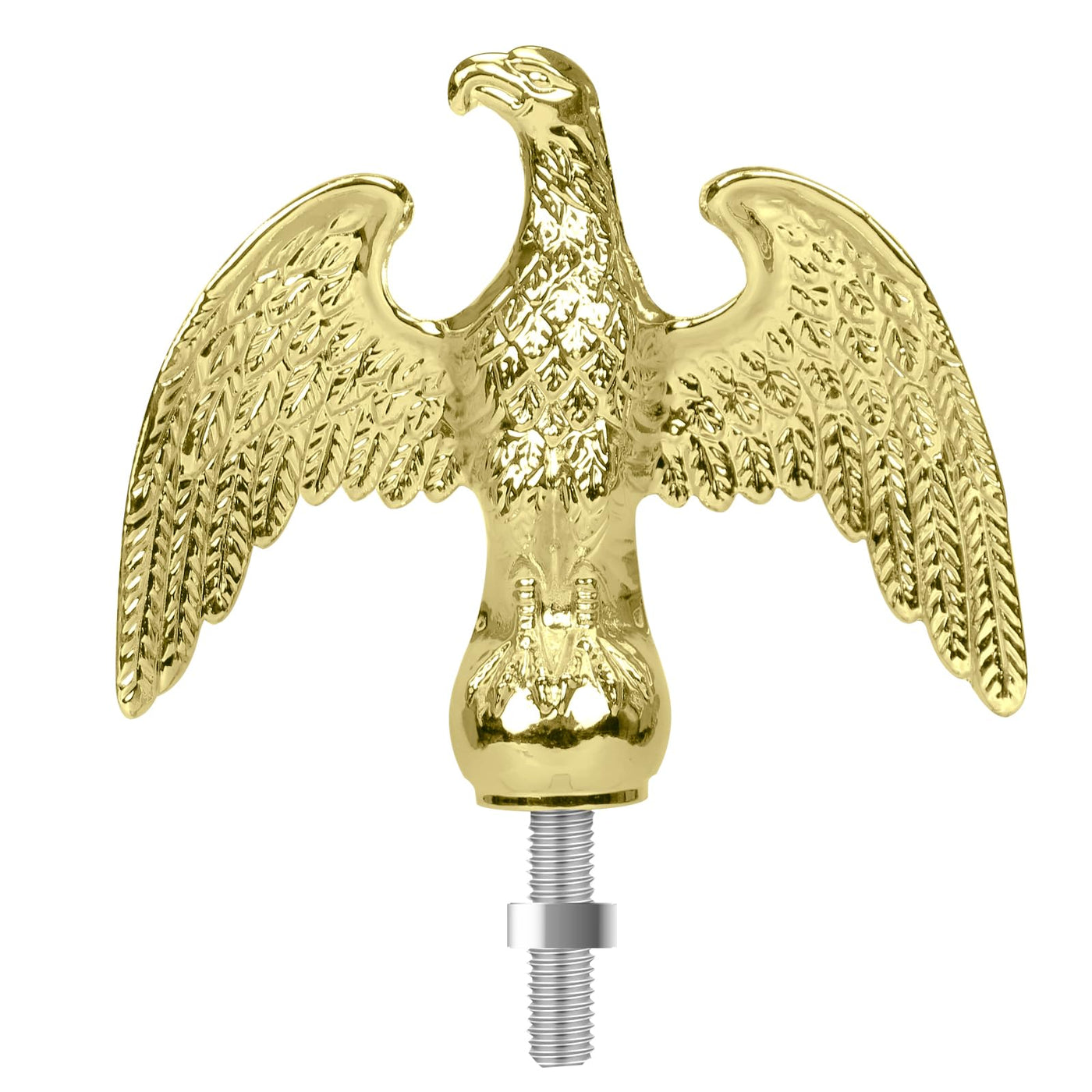 Our Gold Painted Eagle Top Ornament Finial Is Made Of Premium Quality Aluminum Alloy, Rust Free & Durable,Suitable For All 16, 20,25 And 30 Telescopic Flagpoles Or Sectional Flagpoles And Can Work With Flagpole Solar Light Exalted And Majestic Exterior Design Makes Your Flags Dazzling And Perfect To Show Your Braveness, Tenacity, Independence, Democracy And Strong Patriotic Spirit Please Note, If This Does Not Fit Your Pole, Its Not Faulty - It Is A Standard 12-13 Unc Thread Which Fits Many Us Flag Poles