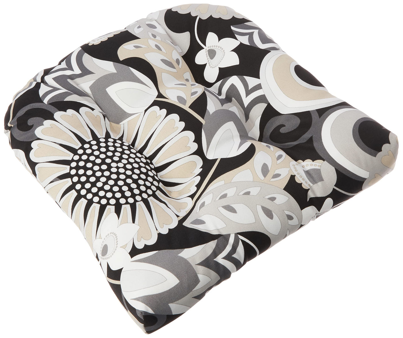 Pillow Perfect Floral Indoor/Outdoor Chair Seat Cushion, Tufted, Weather, And Fade Resistant, 19' X 19', Black/White Sophia, 2