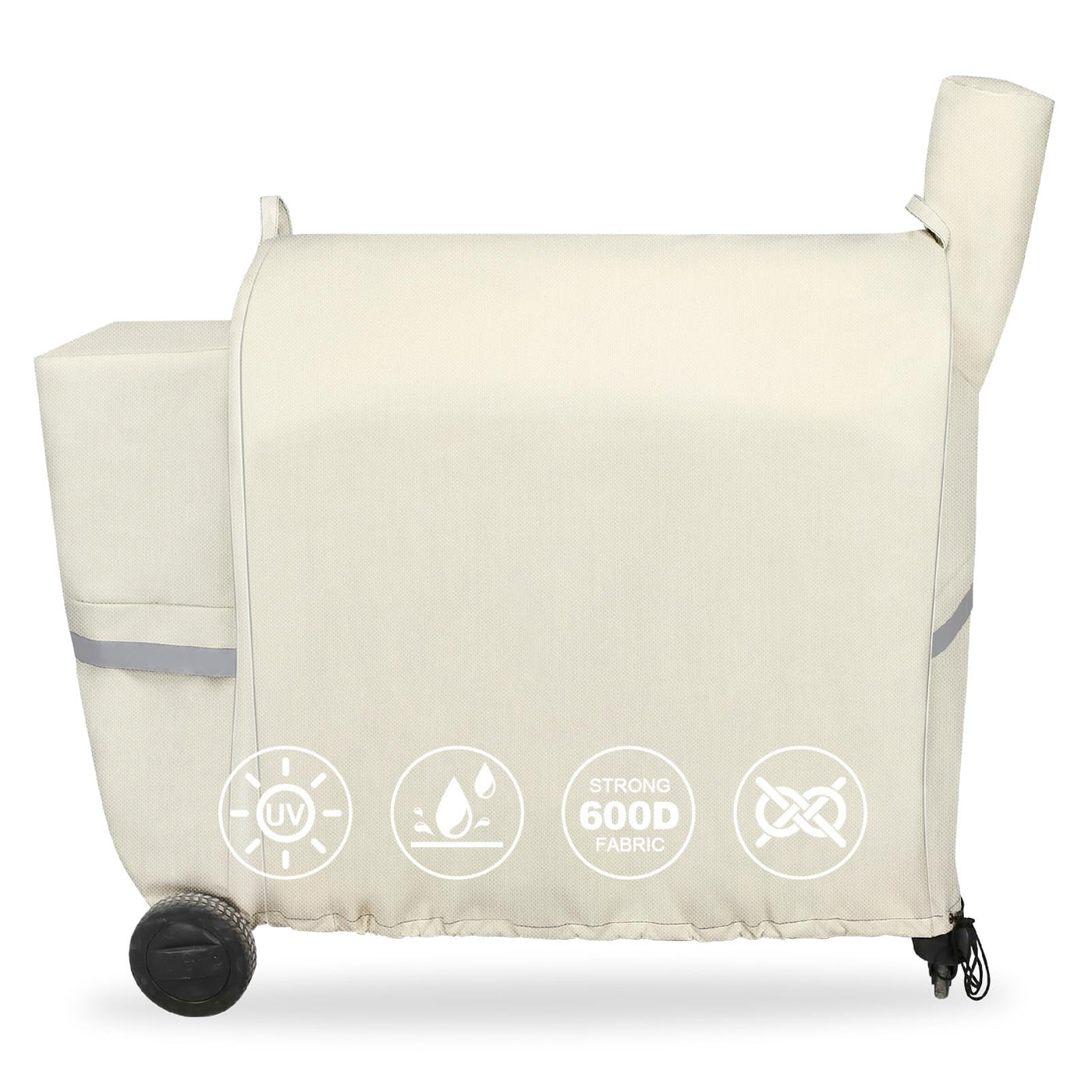 Qulimetal Pellet Grill Cover For Traeger Pro 34/780, Texas Elite 34, Eastwood 34 Series Pellet Grills, Z Grills 700/550/600, 600D Fade Resistant Full Length Grill Cover With Elastic Drawstrings, Beige