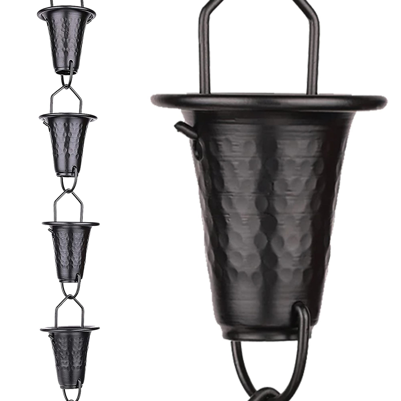 Whether You Are Looking For An Understated Elegance Or A Dramatic Statement, Our Rain Catcher Chain Is A Great Way To Elevate Your Home'S Exterior. Their Timeless Design And Beauty Will Give Your Home A Unique And Personalized Look That Will Last For Years To Come.Features:-Elegant Design: Crafted With High-Quality Iron And Exceptional Craftsmanship, Our Rain Chains For Downspouts Offer An Elegant And Beautiful Alternative To Traditional Gutter Downspouts. With Meticulous Craftsmanship And Attention To Detail, Rain Chains Add Expression And Character To Roof Drainage Systems, Making Them A Smart And Stylish Choice For Any Home.-Manage Rainwater: The Garden Rain Chain Effectively Catches The Rainwater From The Roof And Guides It To The Ground In A Controlled Manner. Not Only Are They An Efficient Way To Manage Rainwater Runoff, But They Also Create A Wonderful Fountain Effect That Can Enhance The Beauty Of Any Home Or Garden.-Diy Ready: Installing Gutter Rain Chain Is A Breeze With The Included V Hook Clips, Requiring No Tools To Get The Job Done. This Makes Them A Great Do-It-Yourself Project And Is Suitable For Almost Any Skill Level. With A Wide Variety Of Sizes To Choose From, Including 4 Cup, 5 Cup, 6 Cup, 7 Cup, 8 Cup, 9 Cup, And 10 Cup, It Is Easy To Find The Right Size For Your Home..-Satisfaction Guaranteed: Our Rain Chain Adapters Are An Ideal Way To Add Beauty And Functionality To Your Home. Not Only Are They Reasonably Priced, But They Come With The Added Convenience Of A Full Refund If Youre Not Satisfied. Whether You Want A Stylish Addition To Your Landscaping Or A Practical Way To Redirect Rainwater Away From Your Homes Foundation, Our Cheap Rain Chain Is An Economical And Attractive Solution For Any Home.