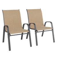 Our Metal Outdoor Chairs Not Only Feature A Sturdy Steel Frame But Also Come Equipped With A Specially Designed A-Structure, Effortlessly Supporting Weights Exceeding 350 Pounds. The Frame Undergoes A Powder Coating Process, Ensuring Rust Resistance And Long-Lasting Quality. The Backrest And Seat Are Crafted From High-Density Teslin Fabric, Offering Robust Tensile Strength And Abrasion Resistance, While Also Drying Quickly And Providing Excellent Breathability. This Unique Fabric Boasts Exceptional Durability, Ensuring Your Patio Chairs Shine Brightly As The Focal Point Of Your Backyard. Each Outside Chair'S Backrest And Armrests Adhere To Ergonomic Principles, Providing Optimal Support For Your Waist And Back, Complemented By The Curved Armrests On Both Sides, Delivering An Unparalleled Comfort Experience For Your Outdoor Relaxation. Compared To Traditional 18-Inch Seats, Our Outdoor Chairs Feature Wider 20-Inch Seats, Prioritizing User Comfort For Leisurely Enjoyment. Whether By The Poolside, In The Backyard, Or Garden, They Serve As Your Ideal Choice For Unwinding And Seamlessly Blend Into Any Outdoor Setting. Each Chair Component Is Equipped With Numbered Labels, Facilitating Simple And Convenient Assembly. When Not In Use, They Can Be Easily Stacked To Save Space. Remember: Alternate Tightening Screws To 70% Before Fully Tightening. Material: Metal Size: 25.2 L X 26 W X 37.8 H Color: Brown Package: 2 X Patio Chairs Weight:23.98 Lbs