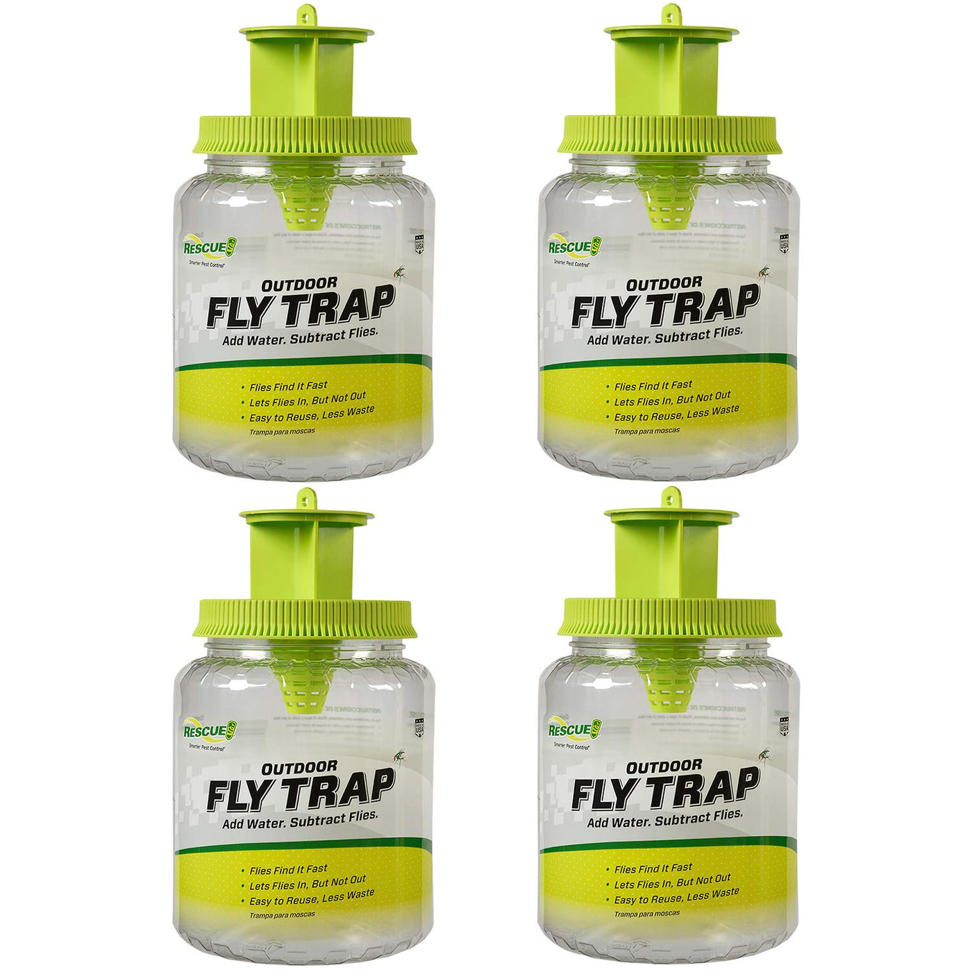 For A Fast, Safe, And Easy-To-Use Solution To Your Outdoor Fly Problems, Look No Further Than The Rescue! Outdoor Fly Trap! This Trap Catches Hundreds Of Species Of Common Flies, Including House Flies, False Stable Flies, Blow Flies, Blue And Green Bottle Flies, Flesh Flies, Face Flies And Many Others. Once Water Is Added To The Trap, The Included Bait Quickly Begins To Lure Flies. Once Flies Are Lured Inside, They Drown In The Water Inside The Trap. This Trap Can Catch More Than 20,000 Flies, And Because The Container Is Made From Sturdy Plastic, It Can Be Reused With Available Refill Kits (Sold Separately) For Multiple Seasons. Once Activated, This Trap Has A Strong Odor. Only Use This Trap Outdoors.