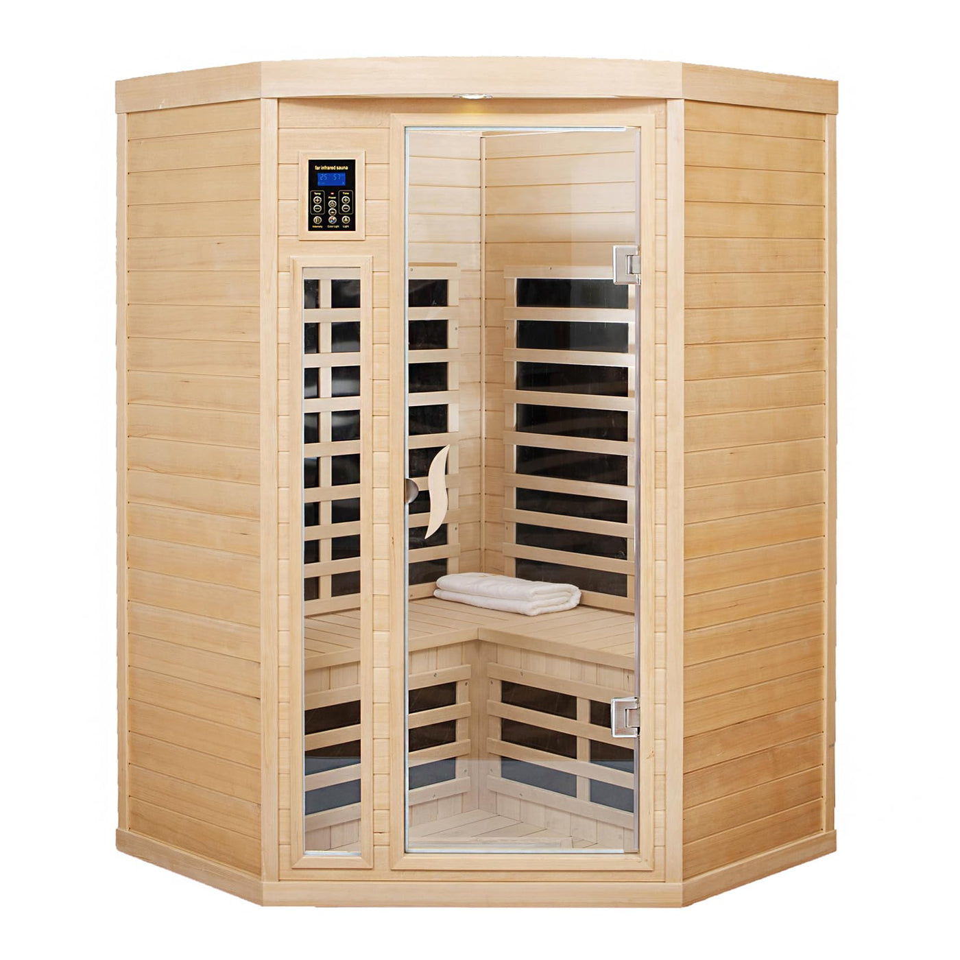 Salusheat Far Infrared Wooden Sauna Room, 2 Person Home Sauna, Canadian Hemlock Indoor Corner Sauna Spa, 7 Low Emf Heaters, 2 Bl