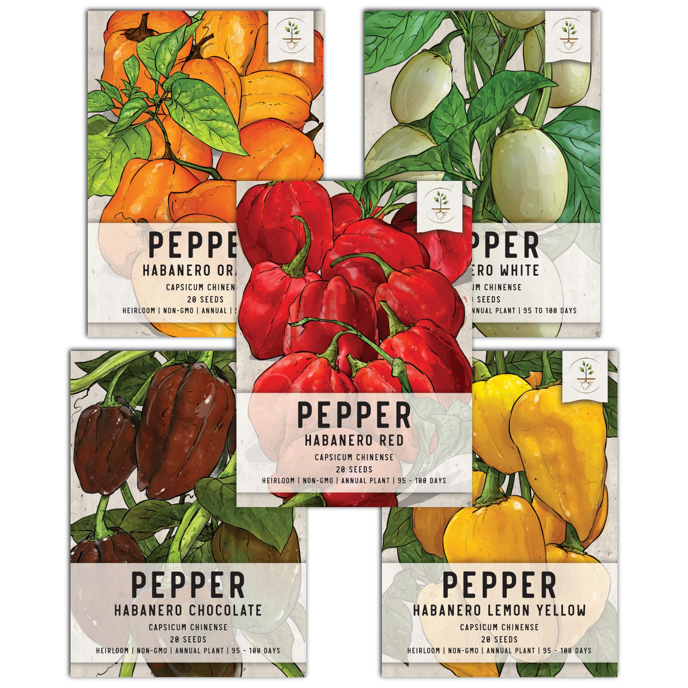 This Habanero Pepper Assortment Includes 5 Of Our Best Selling Peppers. It Is Comprised Of Red, Lemon, Orange, White And Chocolate As Well. The Plants Grow To A Mature Height Of Roughly 24 To 30 Inches Tall, Producing Small Lantern Like Fruits. Their Size Is Not Relative To Their Kick However, As Habanero Peppers Range Anywhere Between 250,000 And 300,000 Units On The Scoville Heat Scale. The Packets Measure 3.25' By 4.50' In Dimension And Come Complete With A Colorful Illustration On The Front Side, As Well As Detailed Sowing Instructions On The Reverse As Well.