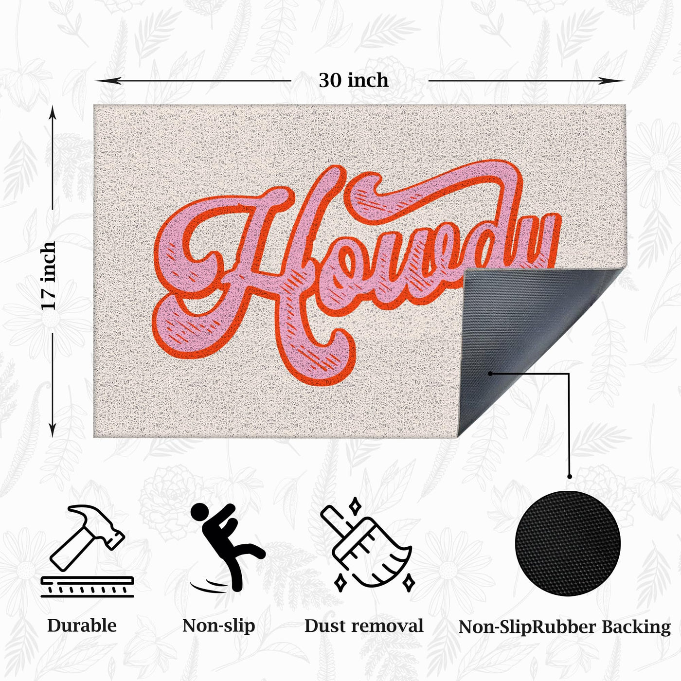 Supwhd Preppy Pink Howdy Door Mats Outdoor - Pink Welcome Mat Outdoor, Western Front Door Mat, Western Door Mat Doormat Outdoor