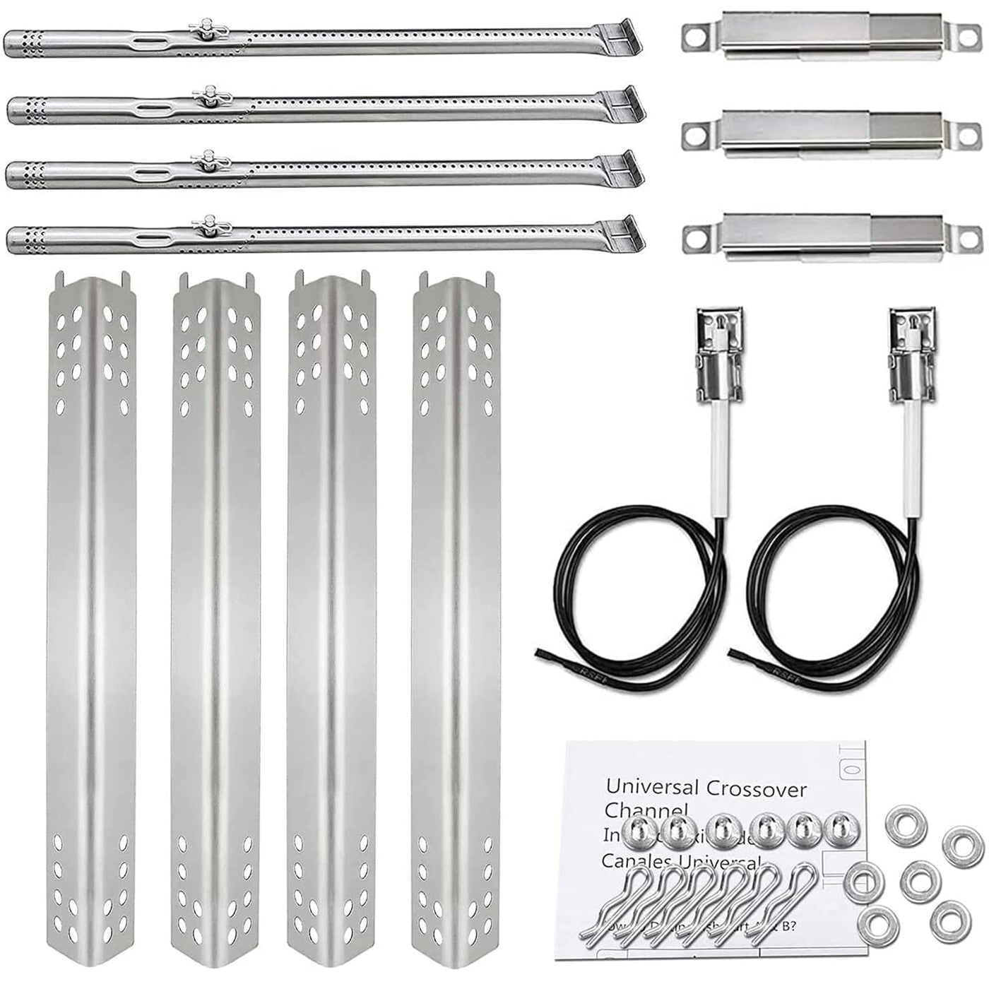 Solidly Made, Quality Material, Durability Longperfect Replacementour Replacement Kits Are Made Of Heavy Gauge Thick Stainless Steel To Ensure Long-Lasting Use, Which Will Not Erode To Rust In A Matter Of Several Months Even You Grill Regularly It Can Fit Your Grill Perfectly And Provide More Even Heat Than Your Grill Ever Did Also Can Make Your Gas Grill Usable For Longer, Cook Better, Get Healthier Meals In Minutestailor Made And Perctly Fitfits Charbroil Performance 463673517, 463673017, 463376018P2, 463376117, 463275517, 463377117, 463673617, 463377017, 463347017 Gas Grill Models Fits Char-Broil Performance 475 4-Burner Liquid Propane Gas Grill Dimensions: Stainless Steel Burner Tube 17-34 X 35 Original Parts Number: G470-5200-W1 Heat Plates Dimension Is 16 1516 X 2 112 Original Parts Number: G470-0004-W1 Adjustable Crossover Tube Can Be Adjust From 5 To 95 Inch, Long Enough To Fit Your Grill Package Included: 4 Grill Burner Tubes, 4 Heat Plate Shields And 3 Adjustable Crossover Tubes Meet Your Multiple Needs Sturdy Packaging: Our Packing Is Strong Enough To Allow You To Receive The Product In Perfect Conditionreal Stainlessour Heat Plate Is Made Of Non-Magnetic Stainless Steel, With Strong Oxidation Resistance, Corrosion Resistance And Heat Resistance Non-Magnetic Flavor Bar Is Harmless To Human Body And Can Be Safely Used The Durability Makes It Unnecessary To Be Changed Again And Againattentionbefore Ordering, Just Ensure That You Measure Your Current One To Ensure These Are The Correct Units For Your Grill Make Sure The Specific Brand, Model And The Year Of Production